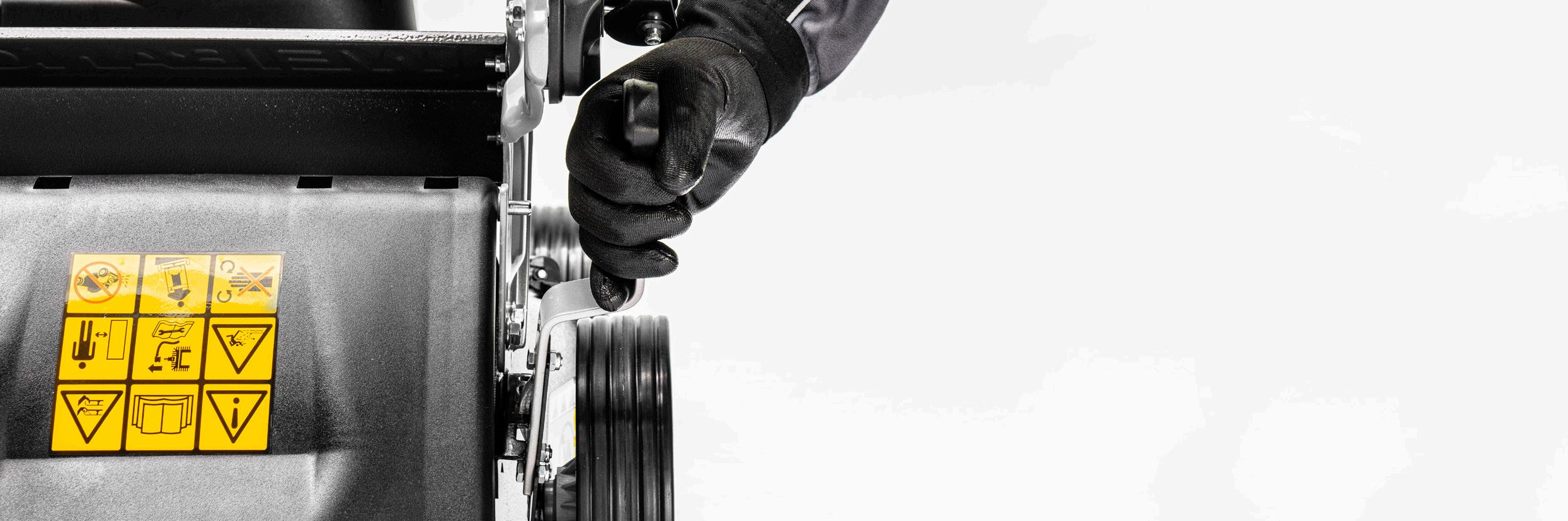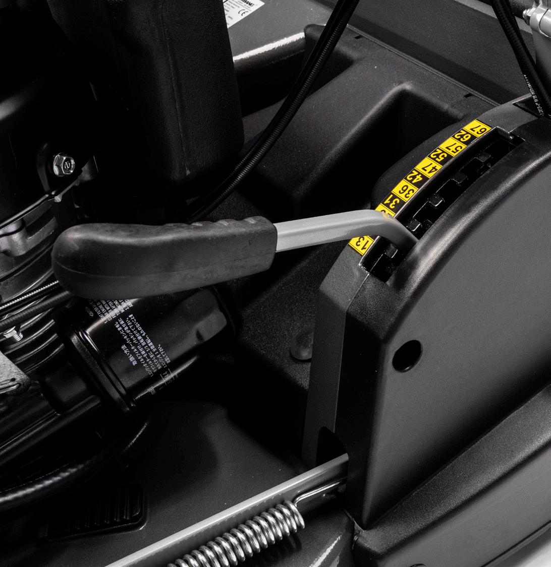 The height of cut is easily adjusted between 10 - 90mm to suit any area and finish. The specially designed winding mechanism offers quick and easy infinite adjustment despite the machines heavy duty build quality.