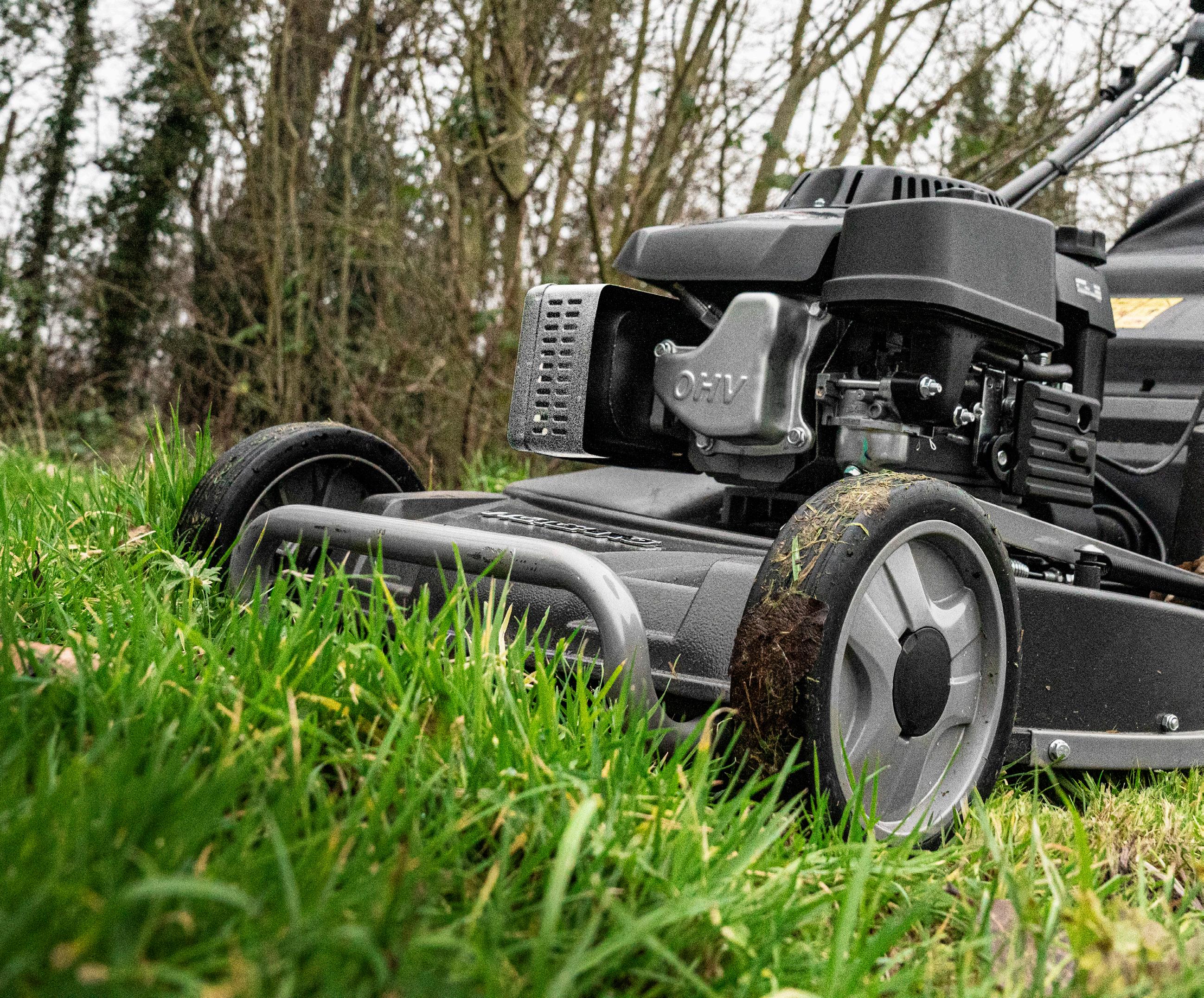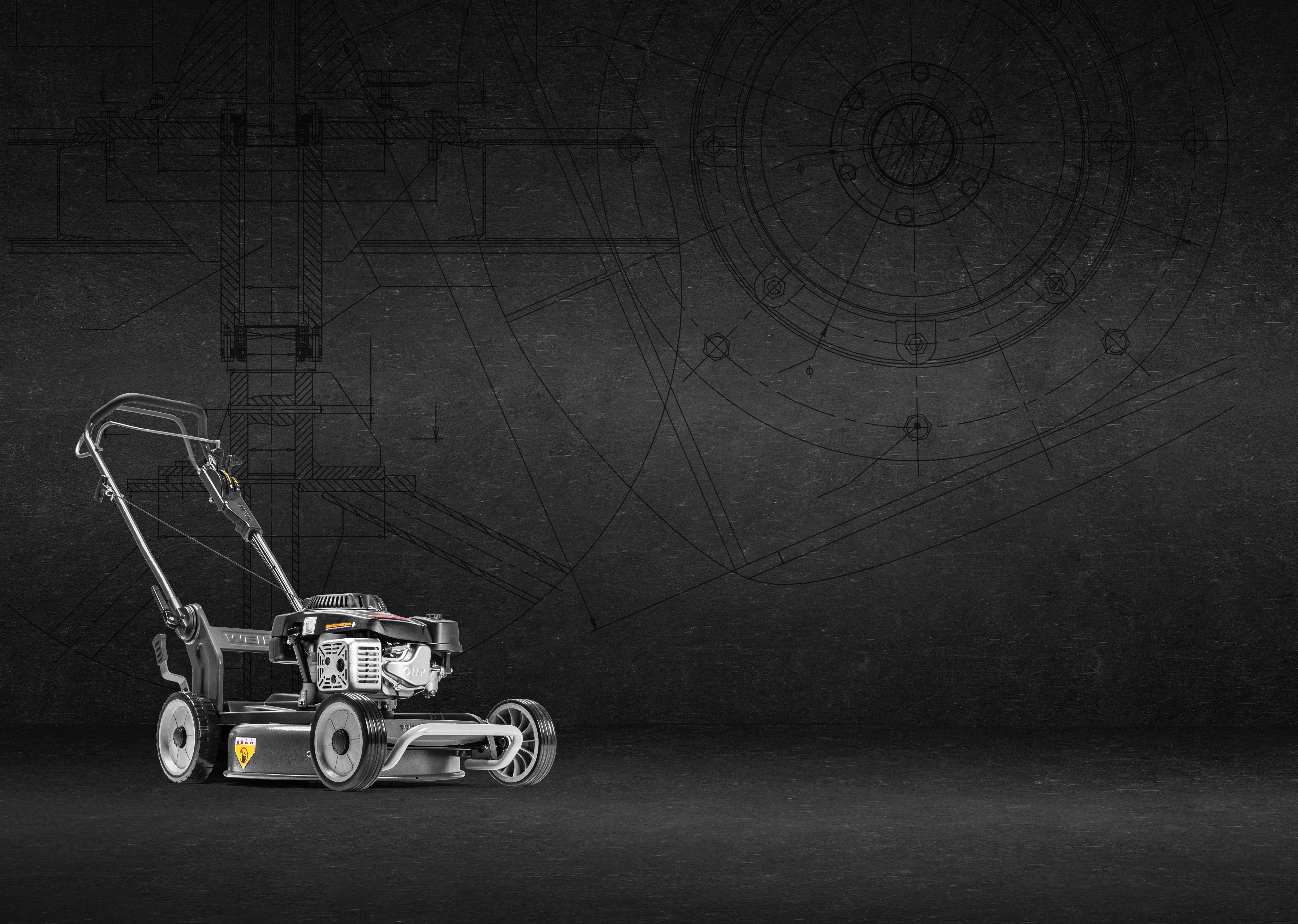 The simplest form of lawnmower, with no gearbox so the user can push the machine at the preferred speed.