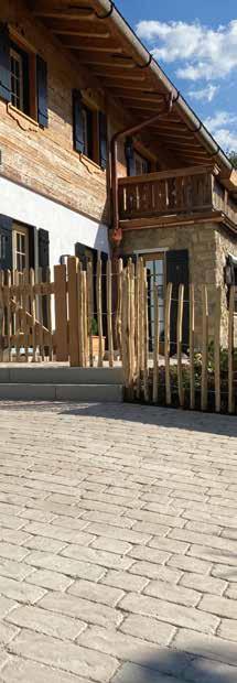 Die gerumpelte Formgebung und das intensiv melierte Farbspiel belegen wieder einmal eindrucksvoll, dass moderne Betonsteine auch optisch den höchsten Ansprüchen an Natürlichkeit und Varianz mehr als genügen.