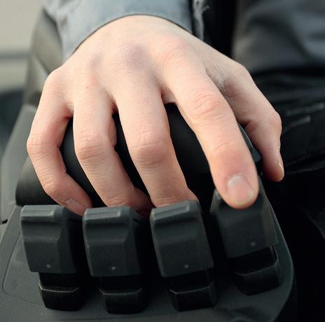 Además, un cómodo reposabrazos integrado totalmente ajustable (diseño galardonado) permite un control preciso sin esfuerzo.