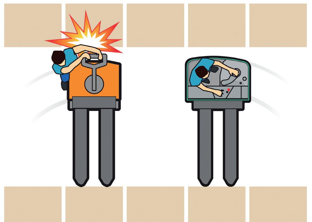 Le châssis des modèles à conducteur porté debout et assis offre également une protection supplémentaire au conducteur.