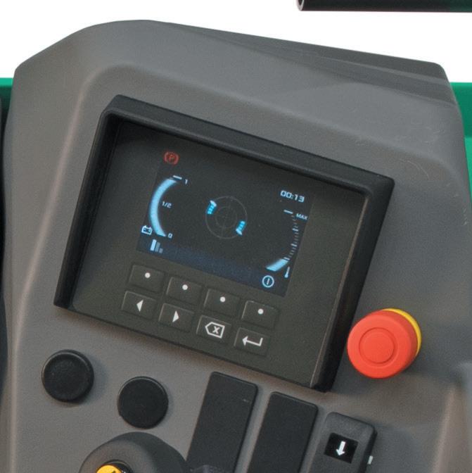 Affiche le mode du chariot, l'état et la vitesse de conduite via des icônes faciles à lire, ainsi que les codes d'erreur. (Option)