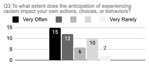 (2) Participants reported higher instances of racial aggressions than antisemitic aggressions, though the majority of participants anticipated both veryoftenand oftenin group settings. These experiences and expectations impact social and communal choices.