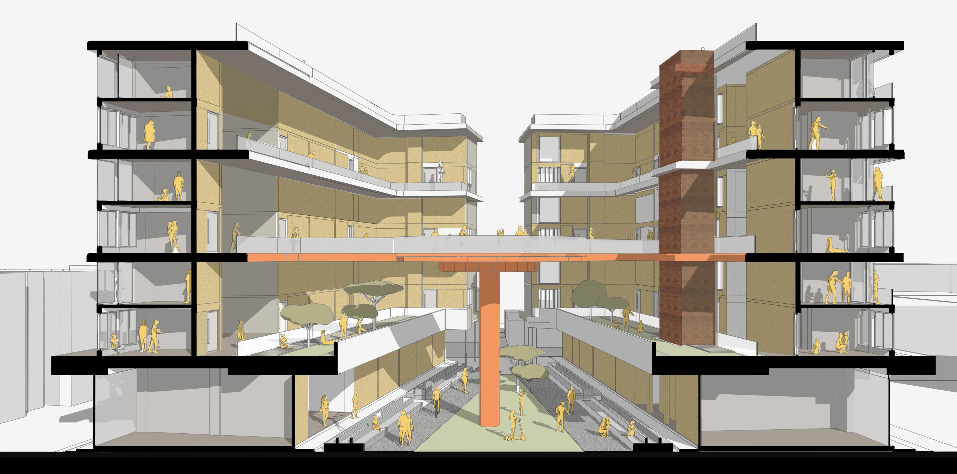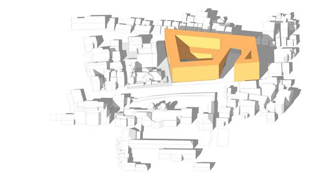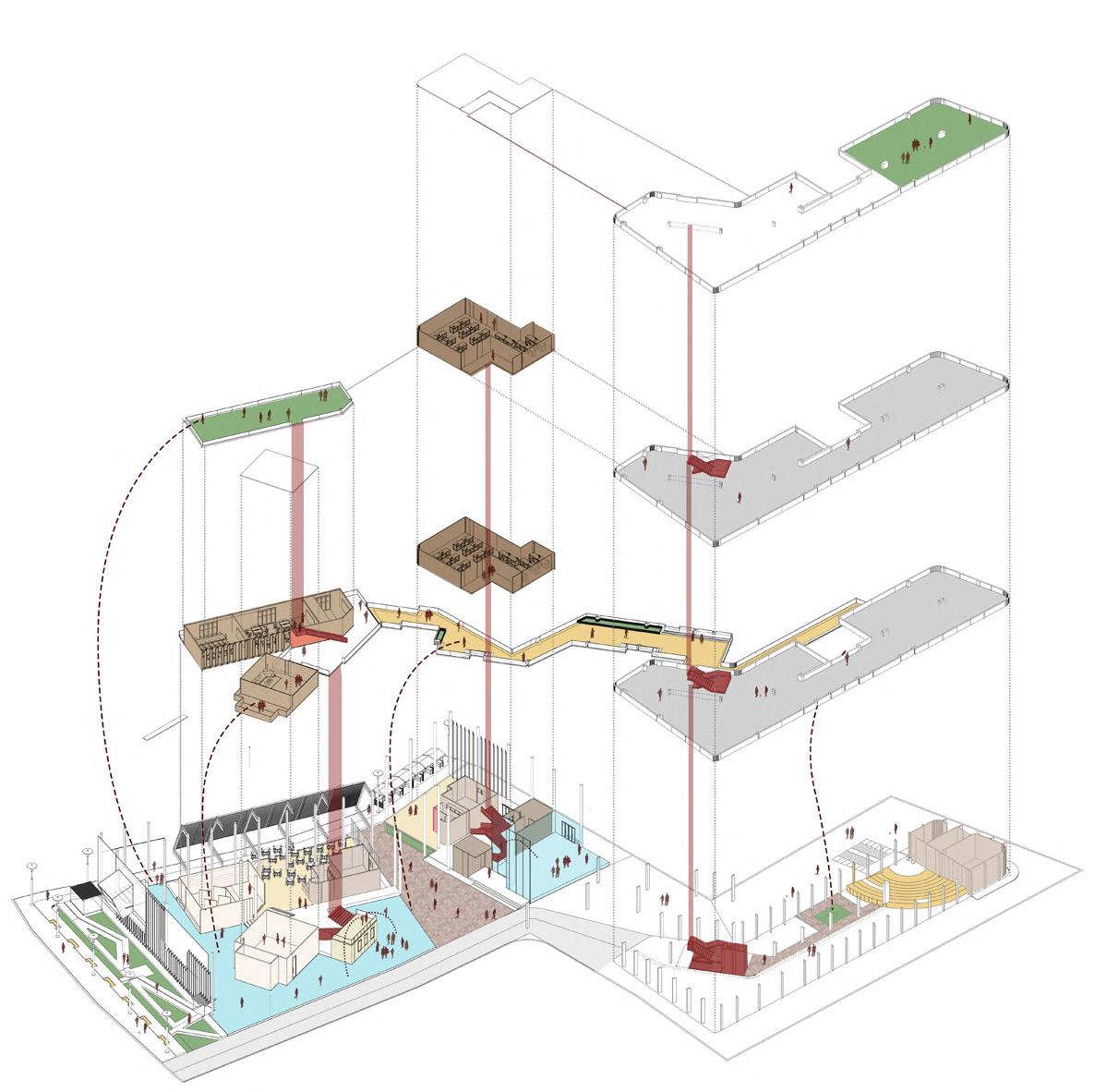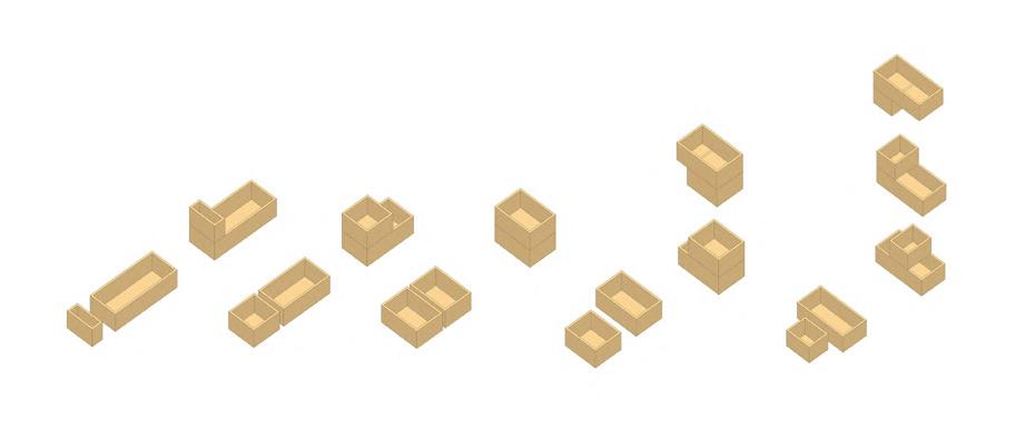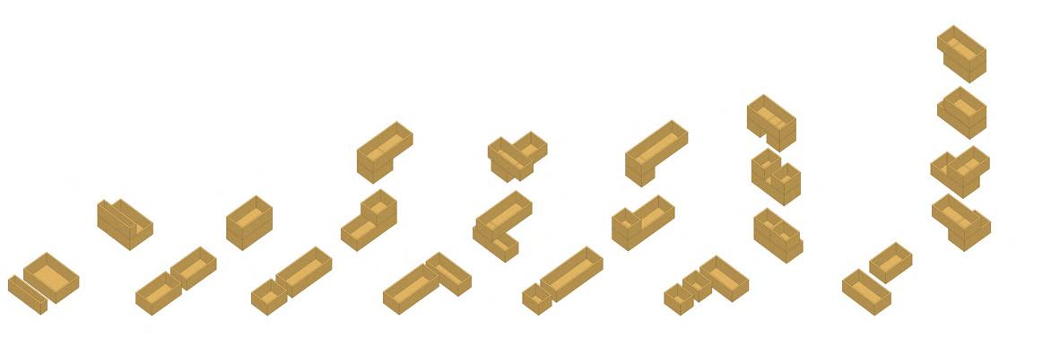 Tetris-shaped modules juxtaposed to create “happenings” in the spaces in` between