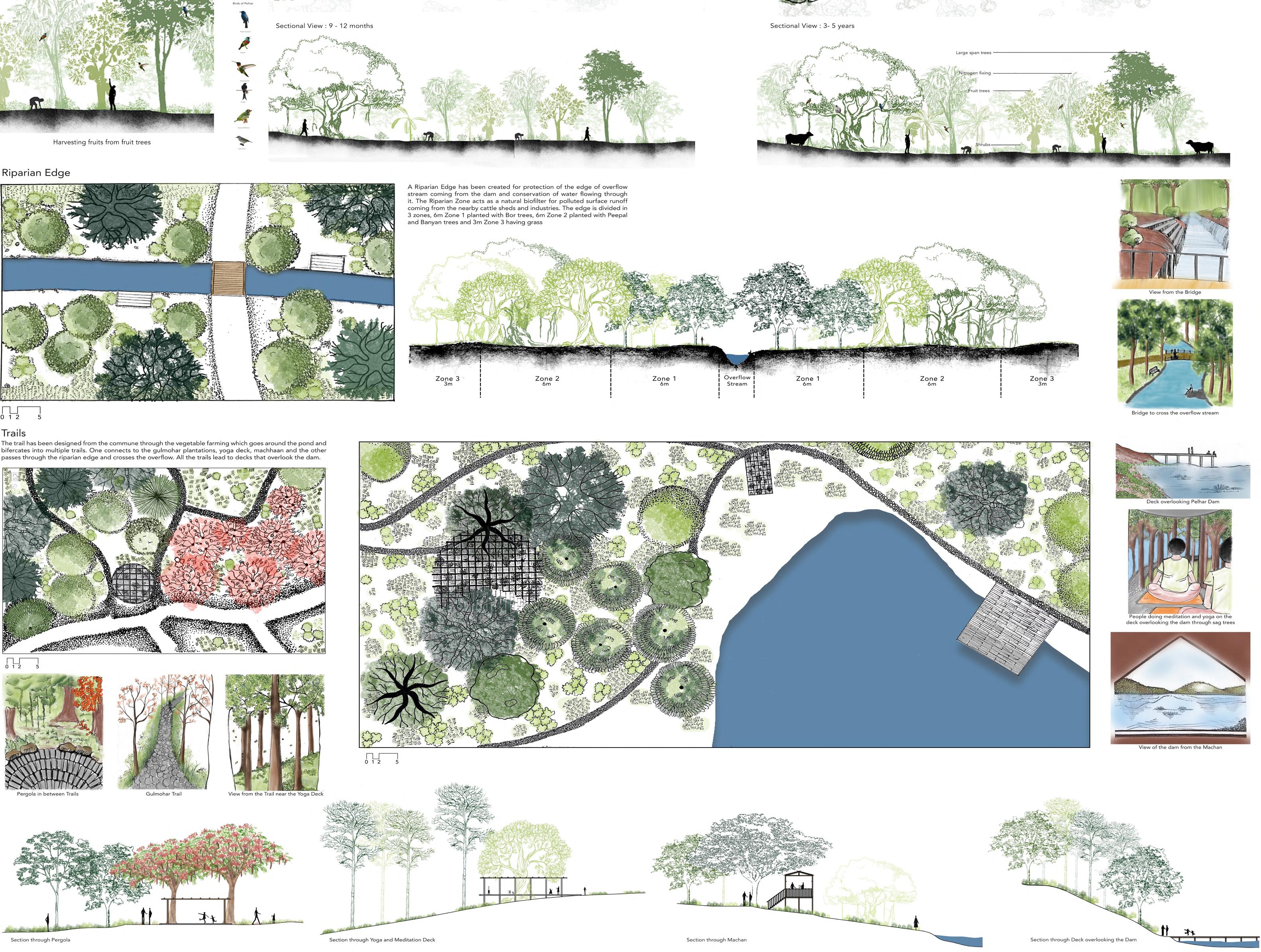 The forest is tranquil, but even in that tranquility, there is a dynamic layer embedded in it. Though the trees seem to be rooted, its branches and roots slither out in a myriad directions, claiming the forest floor their own. There is also the fluidity of the river which brings some grace and softness to the landscape. The entire forest seems to be breathing, moving by millimetres as you take a breath in and freezing back to stillness when you let it out. The air is quiet too, as though it is just content to sit on the soil in between the trees. It instills calm, peace and hope in one, and this becomes the purpose for the concept.