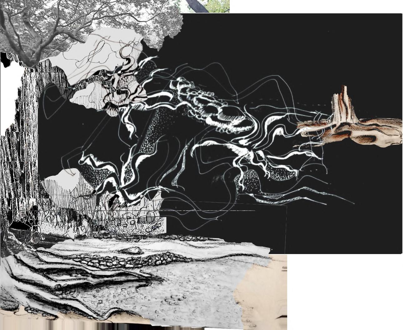 The forest is tranquil, but even in that tranquility, there is a dynamic layer embedded in it. Though the trees seem to be rooted, its branches and roots slither out in a myriad directions, claiming the forest floor their own. There is also the fluidity of the river which brings some grace and softness to the landscape. The entire forest seems to be breathing, moving by millimetres as you take a breath in and freezing back to stillness when you let it out. The concept for my design is derived out of this dynamical nature of the site. The entire landscape seems to be animated and constantly shifting. It is this fluidity and the animated-ness of the forest that inspires the conceptual form.