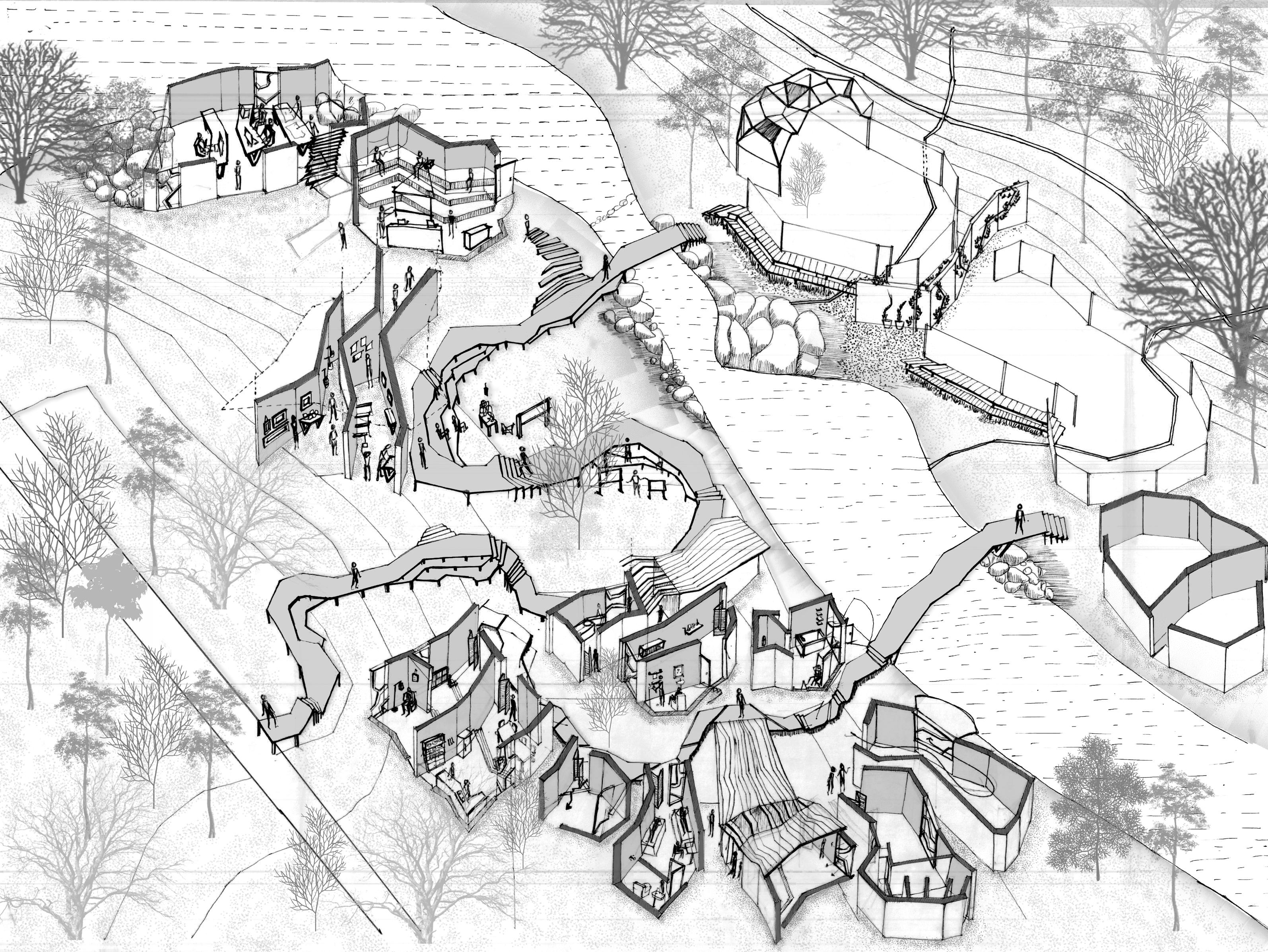 The concept for my design is derived out of this dynamical nature of the site. The entire landscape seems to be animated and constantly shifting. It is this fluidity and the animated-ness of the forest that inspires the conceptual form.