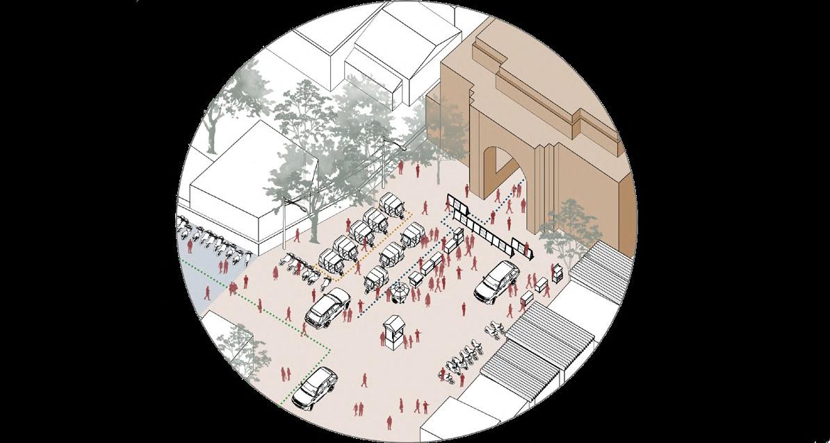 Cities have tackled these problem by improving the public infrastructure first. In these areas where streets cannot be widened, sidewalks, footpaths, cycle tracks have been made in order to encourage pedestrians and to devowed to spill out onto the street, thus softening the boundary between the street and the built form that lends a dynamic nature to such places. Making more plazas and shaded areas serve as pause points for people that allows them to rest in the busy streets, which is especially necessary in the hot climate of Kolhapur.