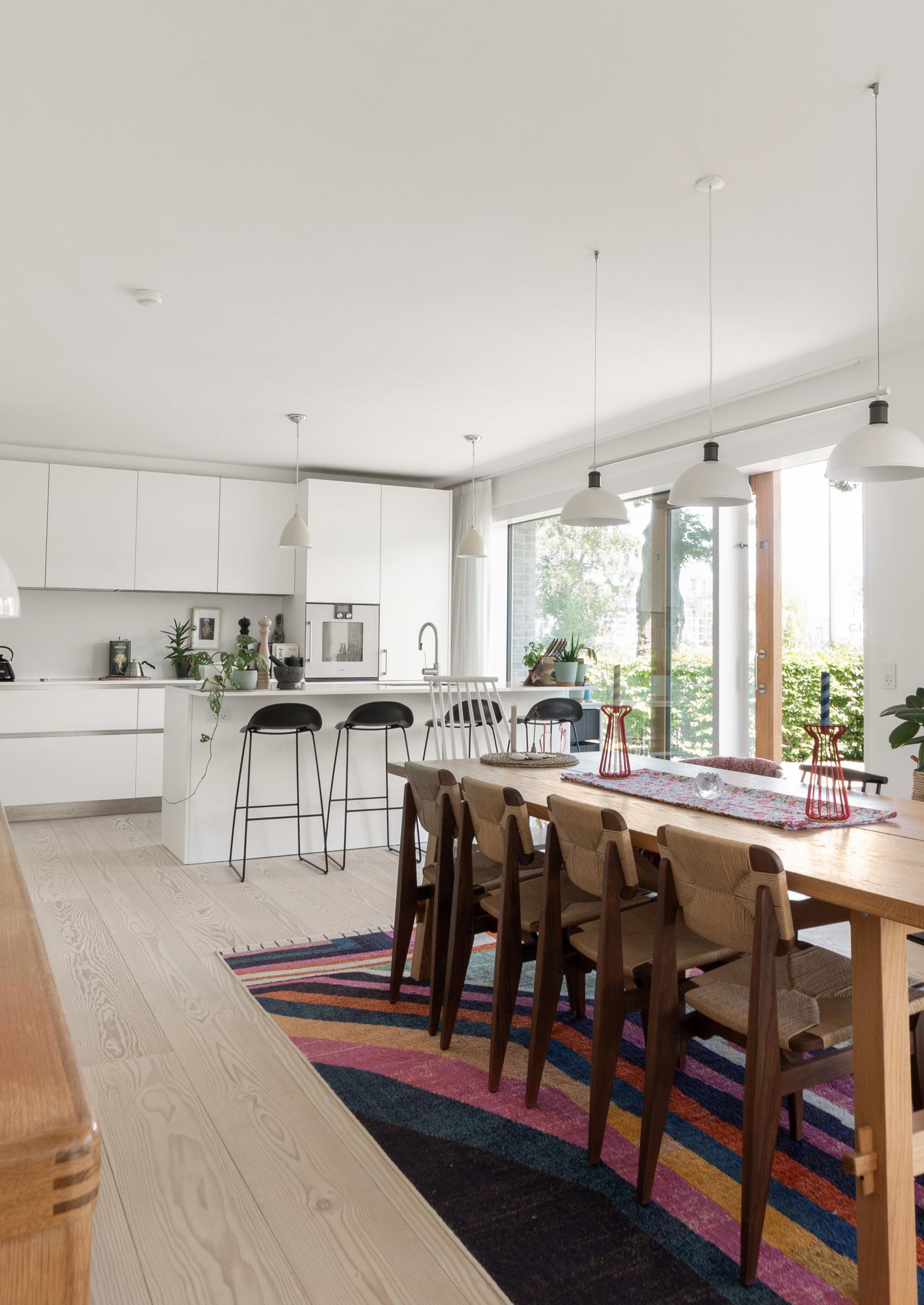 Lejlighedens køkken alrum er skabt til det moderne familieliv og sociale arrangementer. Den åbne planløsning skaber en naturlig forbindelse mellem det stilrene køkken og den rummelige opholdsstue, hvilket giver et lyst og indbydende rum, der er ideelt til både hverdagsmiddage og større selskaber. Her kan du nyde at lave mad, mens du er en del af samtalen og nyder den fantastiske udsigt.