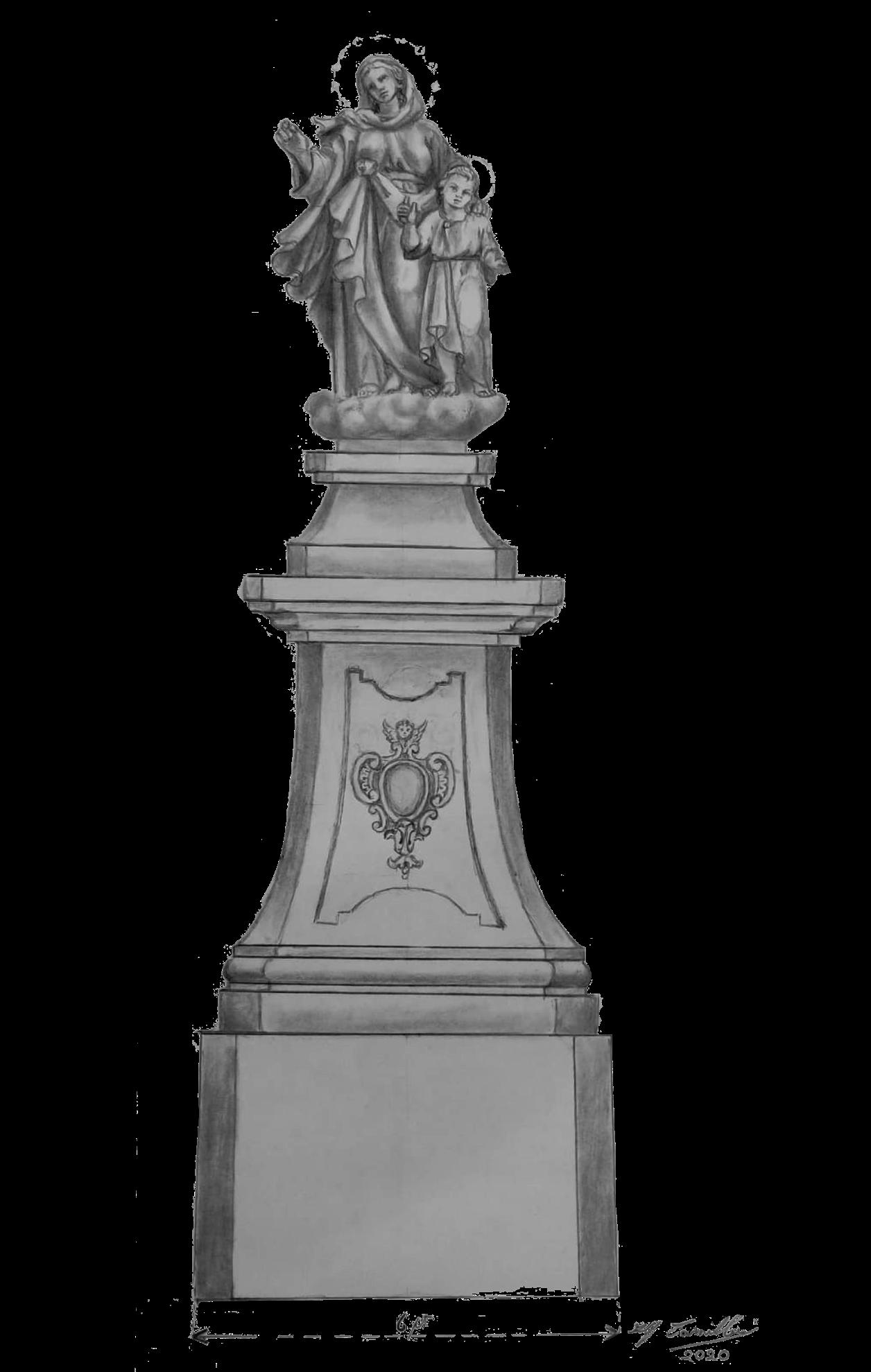 Il-pedistall sar bil-ġbir mill-fratelli u sar arbural ta’ Lm27 li minnhom sar il-pedistall, xogħol ta’ dijadema tal-fidda, girlanda tal-pedistall u forċini ġodda. Il-kumplament tal-ispejjes tħallsu mill-ġbir tal-flieles.
