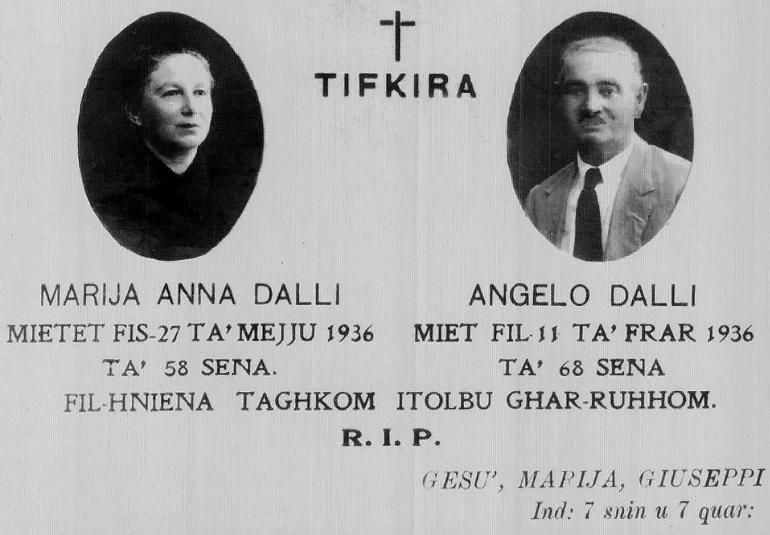 - Meta Anġlu Dalli żżewweġ lil Maria Anna, missieru Ġużeppi kien diġà miet.