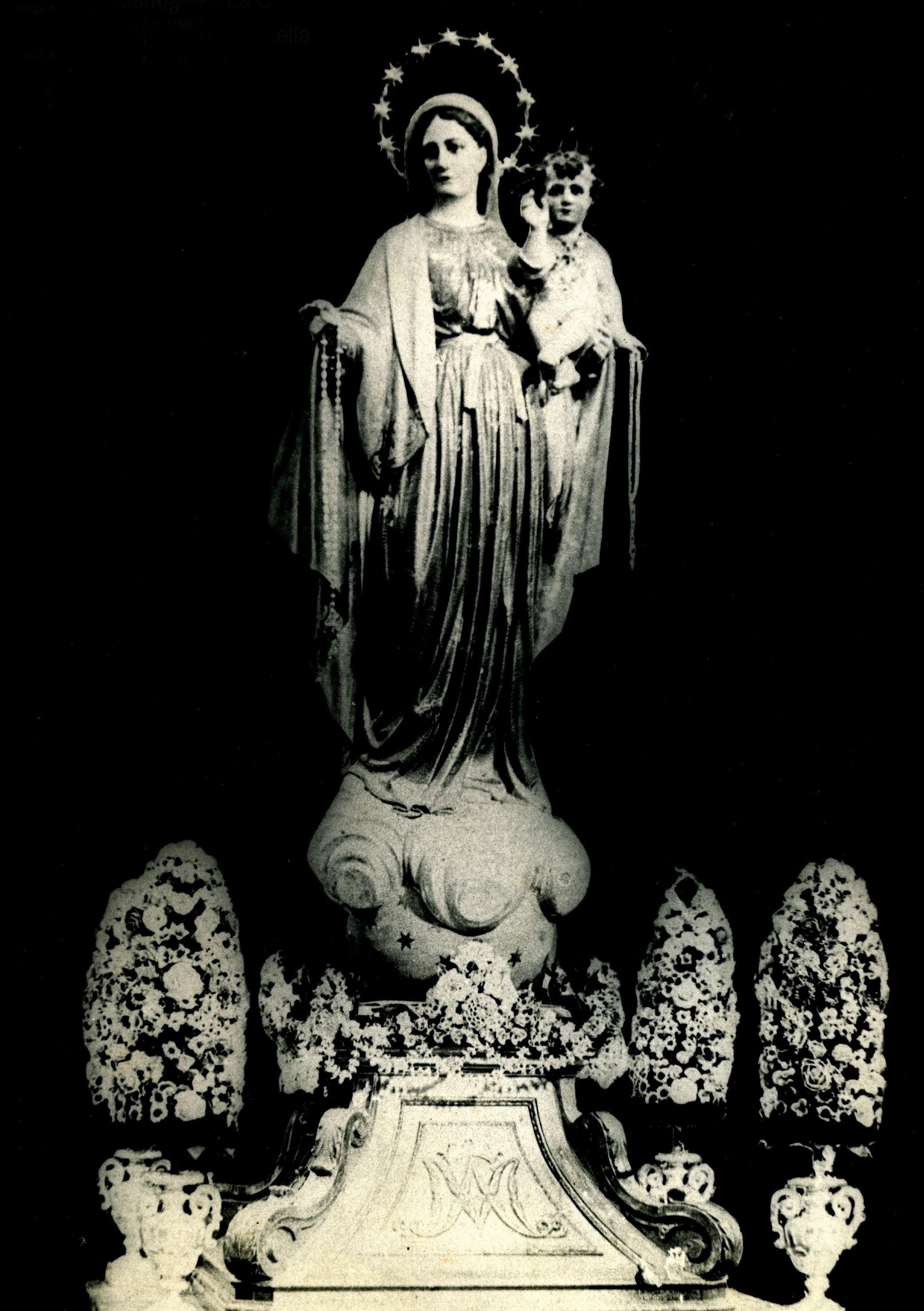 Kienet ġurnata minn ta’ Ottubru tas-sena 1921 meta f’idea li ġietni xtaqt nagħmel mezz illi nkompli ix-xewqa li kelli sa minn ċkuniti, iġifieri illi bħala prokuratur talFratellanza tar-Rużarju tal-Gudja nieħu ħsieb nagħmel statwa ġdida tar-Rużarju. Ġurnata fost il-ġimgħa f’xi s-sitta ta’ waranofsinhar il-kappillan Dun Ġużepp Spiteri mill-Belt kien qiegħed bilqiegħda fuq siġġu għall-frisk fejn iz-zuntier in-naħa ta’ San Ġużepp u jien ersaqt fuqu u ssuġġerejtlu l-idea li kelli u billi dak iż-żmien kien ipprojbit il-ġbir privat minħabba li kien qiegħed isir xogħol taż-żebgħa fil-knisja staqsieni jekk hux sejra ssir bil-ġbir inkella benefattur. Jien irrispondejt li benefattur u huwa qalli mela tista’ tibda x-xogħol. Irringrazzjajtu u tlaqt. Sentejn qabel dan il-fatt, ċertu Gio Maria Galdies bin Katerina Galdies Dalli u Giuseppe Dalli, iz-ziju ta’ dan Gio Maria Galdies kienu xtaqu jkunu benefatturi ta’