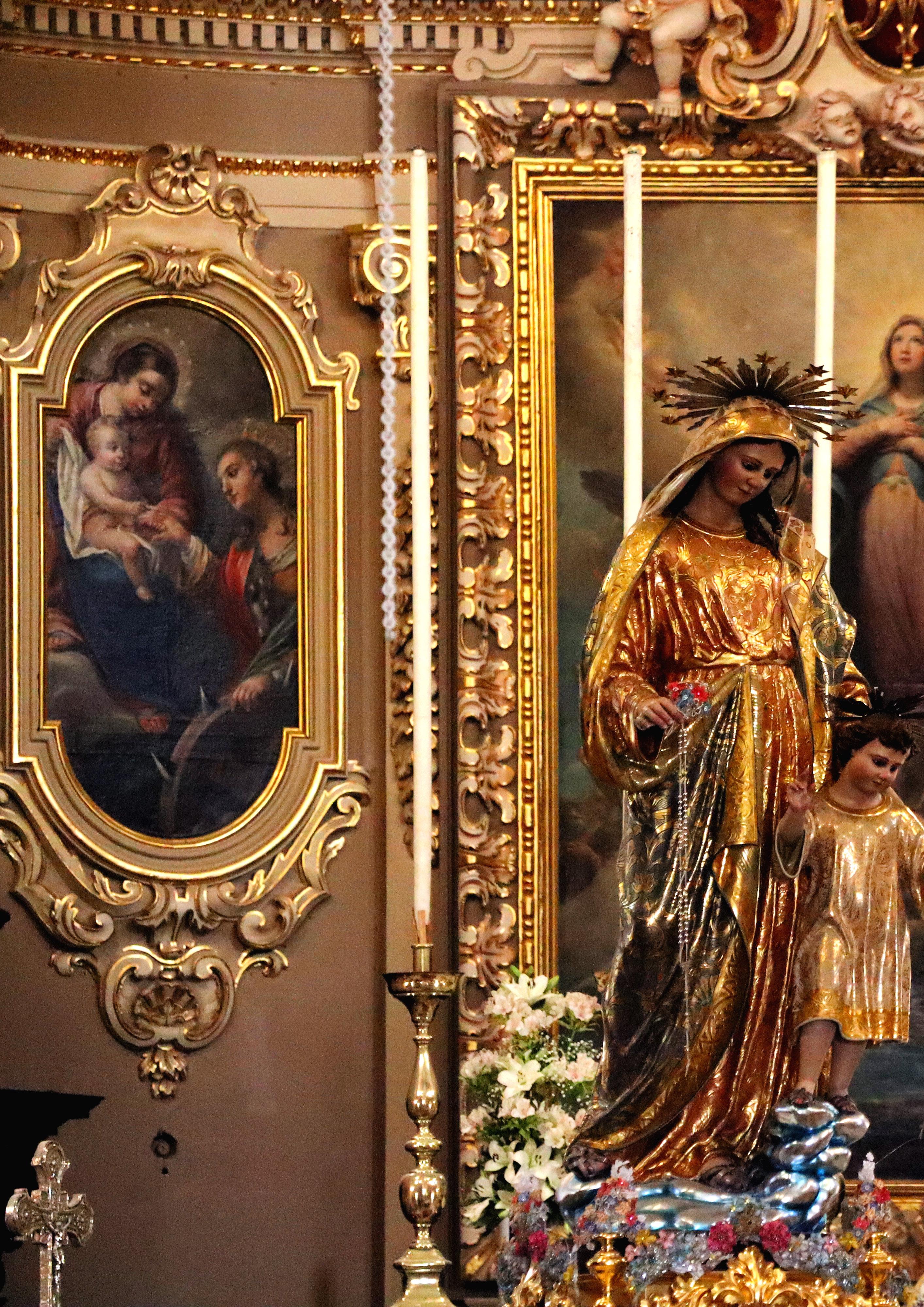 Il-Madonna tar-Rużarju Bil-Kuruna f'idha u f'id il-Bambin Xoghol fl-injam Anton Chircop - 1851 Kappella tal-Lunzjata Il-Gudja