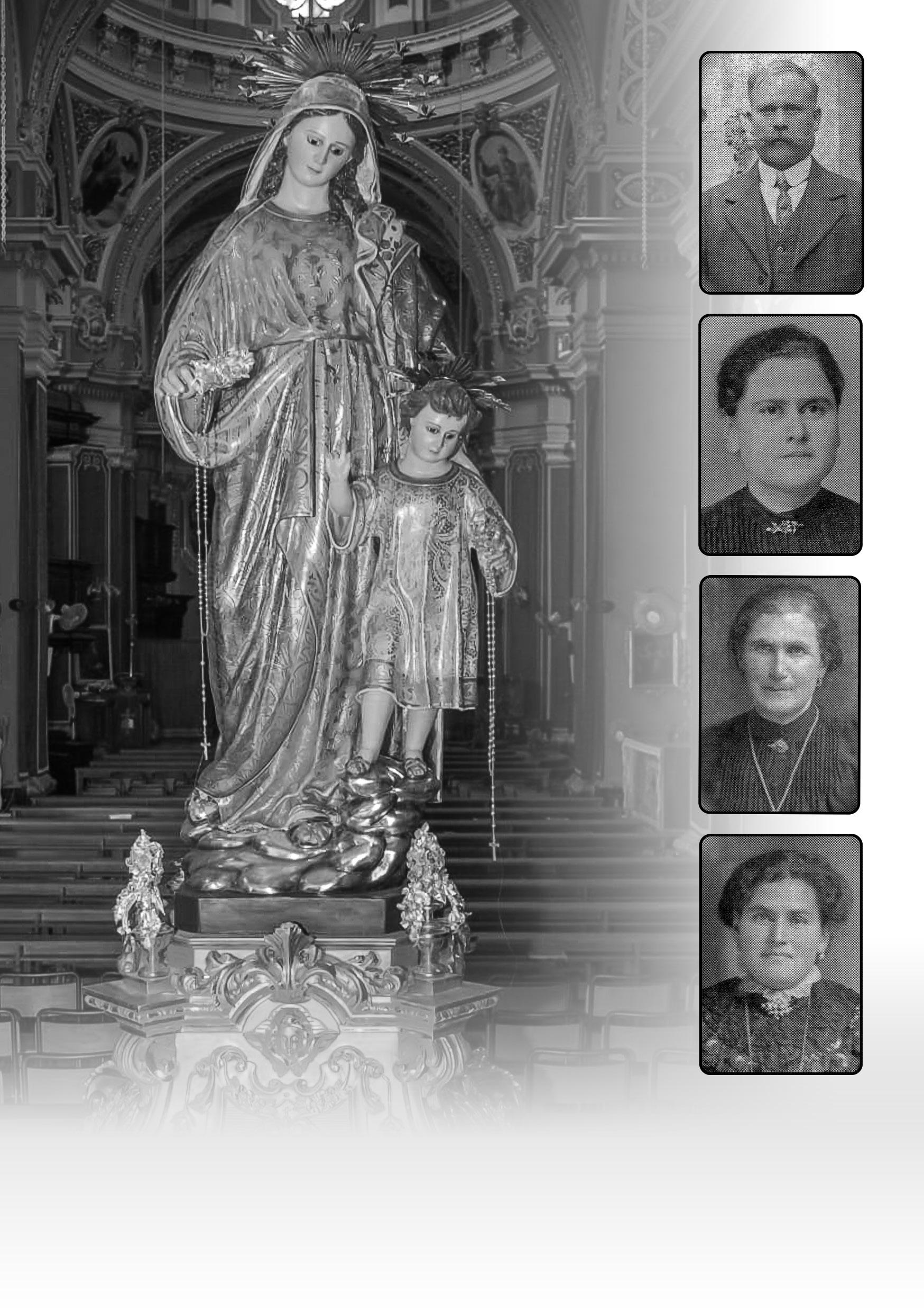 Rożi Ġużeppi Katerina Speranza L-aħwa Dalli, li fl-1922 kienu l-benefatturi tal-istatwa talMadonna tar-Rużarju, maħduma mill-istatwarju Gudjan Angelo Dalli. (Antonio Dalli ma jidhirx fir-ritratti) Soċjetà Filarmonika La Stella Gudja - Festa Madonna tar-Rużarju66