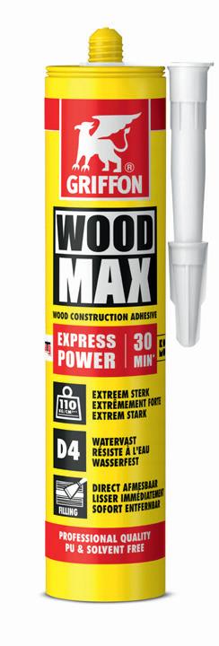 Dé nieuwe generatie houtconstructielijmen Wood Max Express Power, Wood Max Power en Wood Max Transparent Power zijn extreem sterke, watervaste (D4) en vullende houtconstructielijmen, op basis van SMP-Polymer. Deze unieke PU- en oplosmiddelvrije formules zijn direct afmesbaar, bruisen niet (na) en zijn zowel horizontaal als verticaal toepasbaar. Ideaal voor verlijming van alle soorten hout, onderling of in combinatie met andere bouwmaterialen.