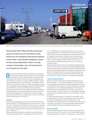 Eind december 2011 hebben Veris Bouwmaterialen groep en Ferney Group een overeenkomst onder tekend voor een strategische samenwerking. Hierdoor kunnen Imabo en BouwCentervestigingen voortaan Ferney’s private labels Kelfort, Oxloc en Ironside verkopen. Ferney krijgt er een mooi inkoopvolume voor terug. Een winwindeal?