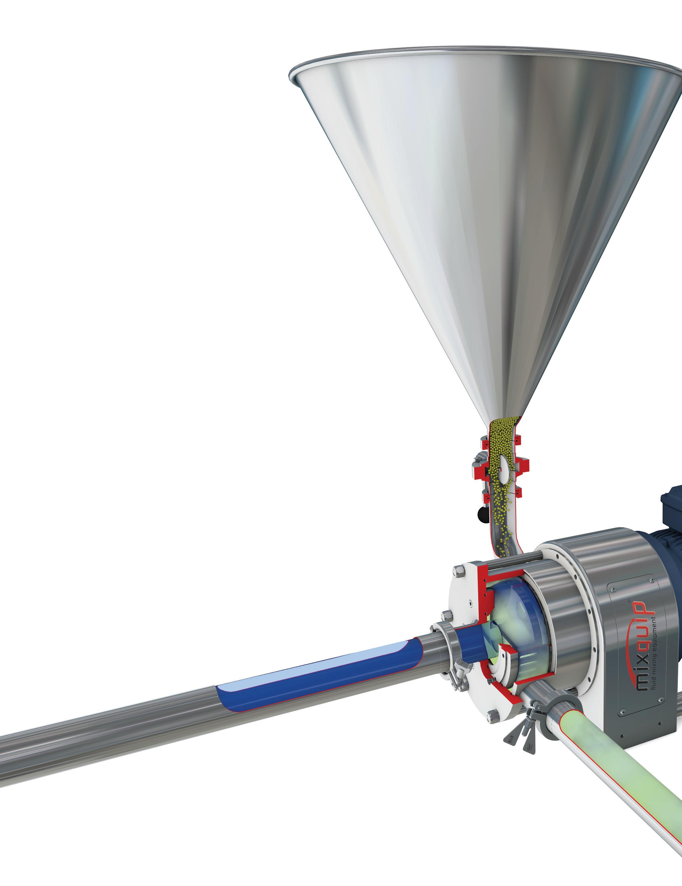 Agglomerate free solutions are only produced when all the solid material is hydrated at the point where the liquid and solid phases combine. Mixquip Series 620 hydrates powders in a single pass action through the work head.