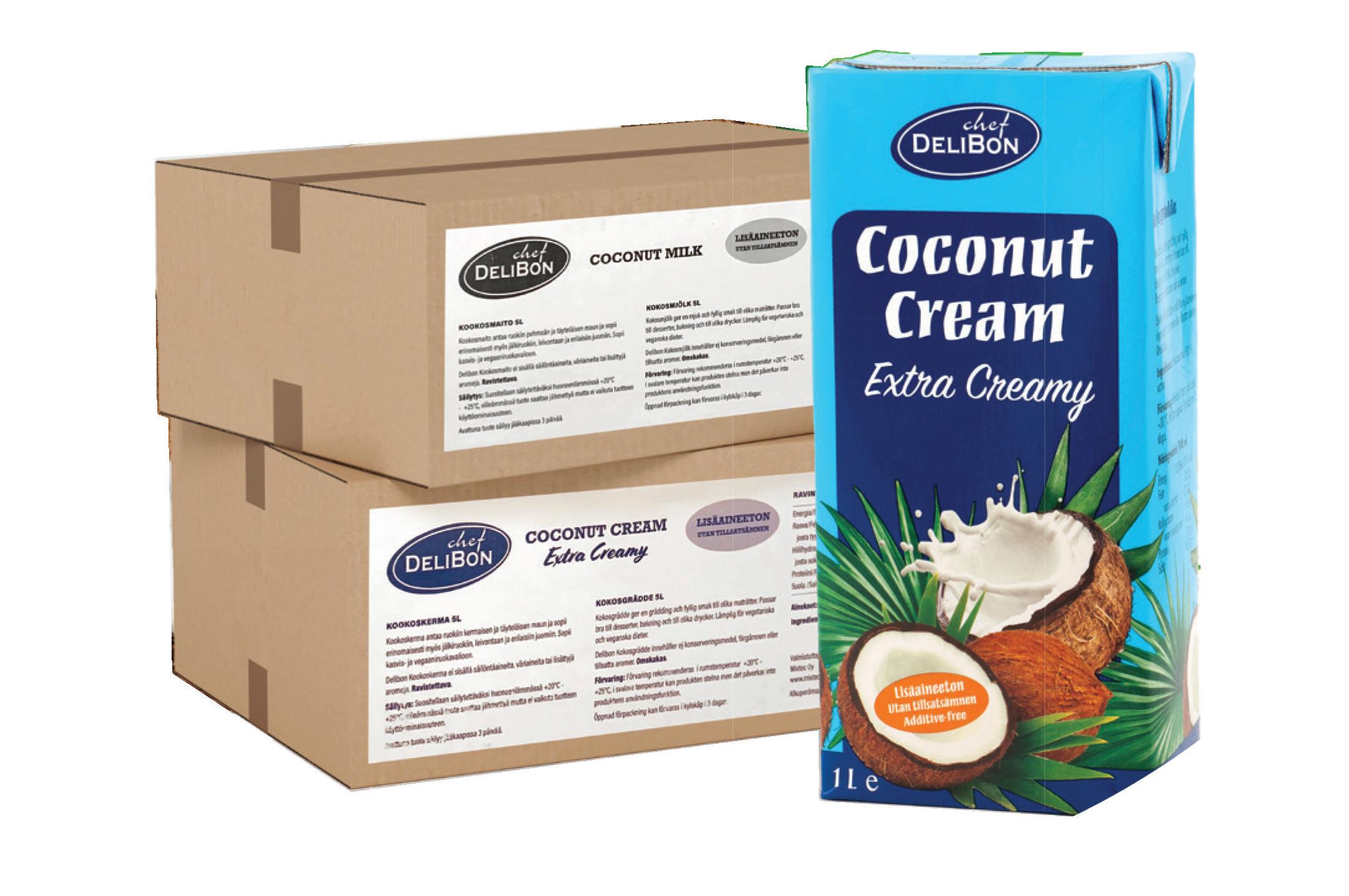 Lisäaineettomat Delibon kookoskerma ja kookosmaito antavat ruokiin täyteläisen ja pehmeän maun. Sopivat erinomaisesti aasialaisiin ruokiin kuten wokkeihin, patoihin ja kastikkeisiin. Sekä jälkiruokiin, leivontaan ja erilaisiin juomiin.