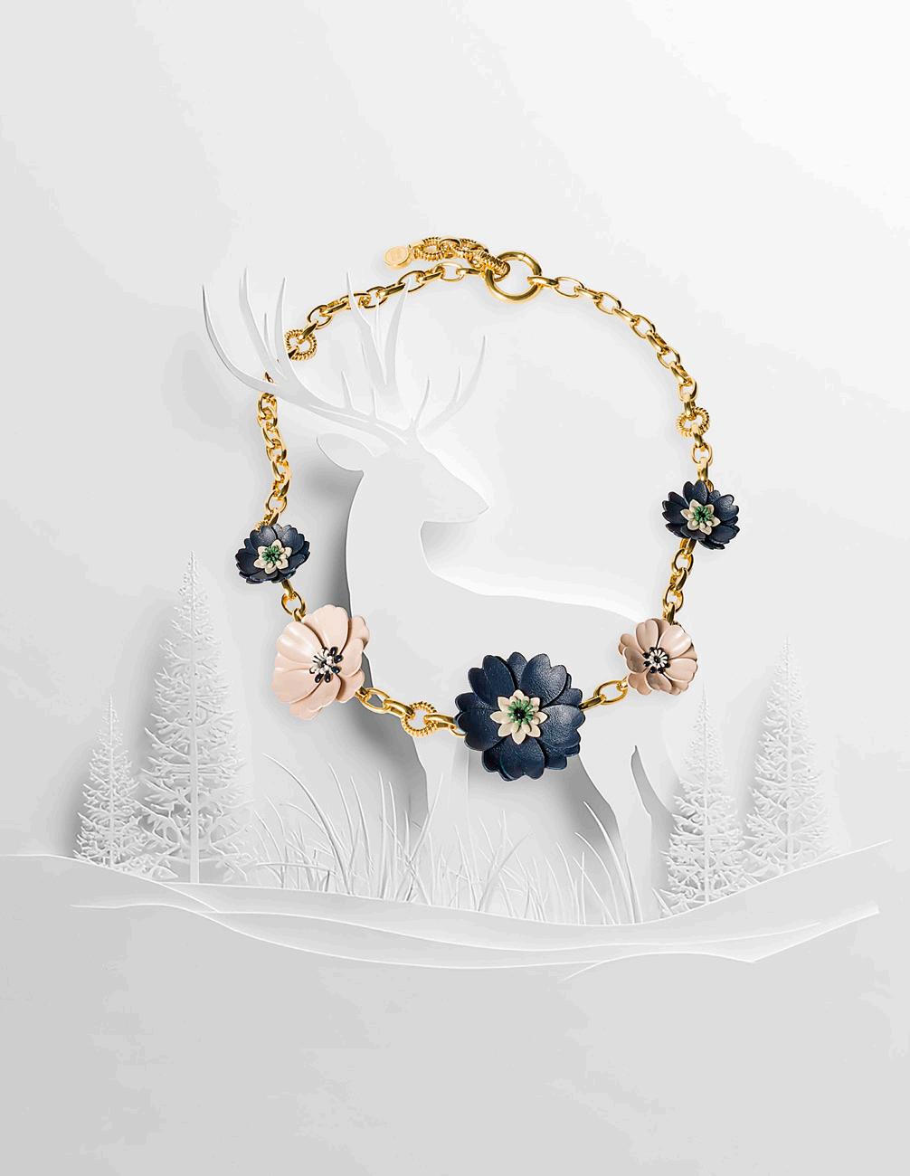 Who said flowers couldn’t bloom in winter? Miu Miu’s adorable necklace features charming leather flowers on a metal chain, displaying the quirky blend of feminine innocence and power that make the house so unique.