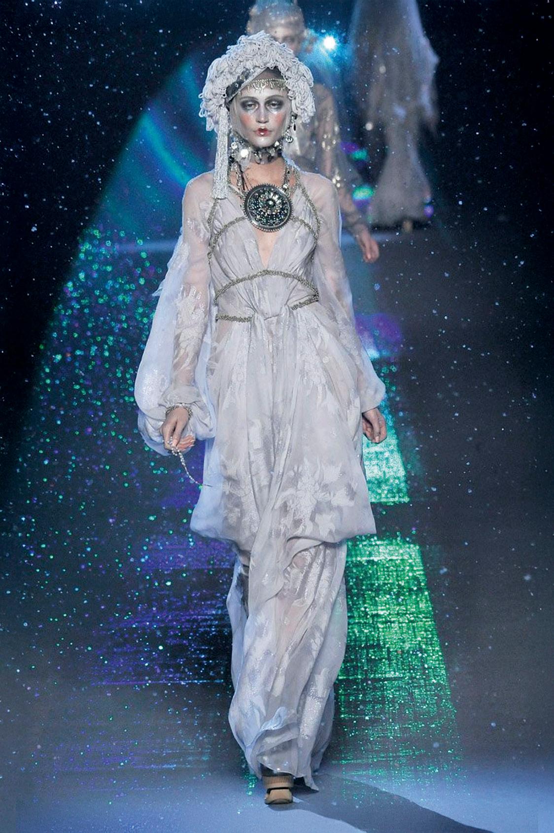 Another master of enchantment, John Galliano, amazed his audience with his Fall-Winter 2009 collection. His instruction was simple: Let It Snow. Galliano offered a meta-winter interpretation of fashion: his season was not realistic, rather fictional and historical, haunted, baroque, exalted. Rooted in the tradition of dark romanticism, his snow was less a season than an allegory of disappearance, memory, and the sublime. Galliano reinvented winter as a mental and cinematic landscape, pushing unreality even further, while unveiling dazzling looks.