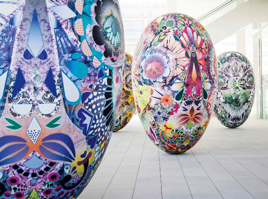 多件充 满 现代 元素 的 标 志性作品 ,其中包括 MYRAN 三 脚 餐