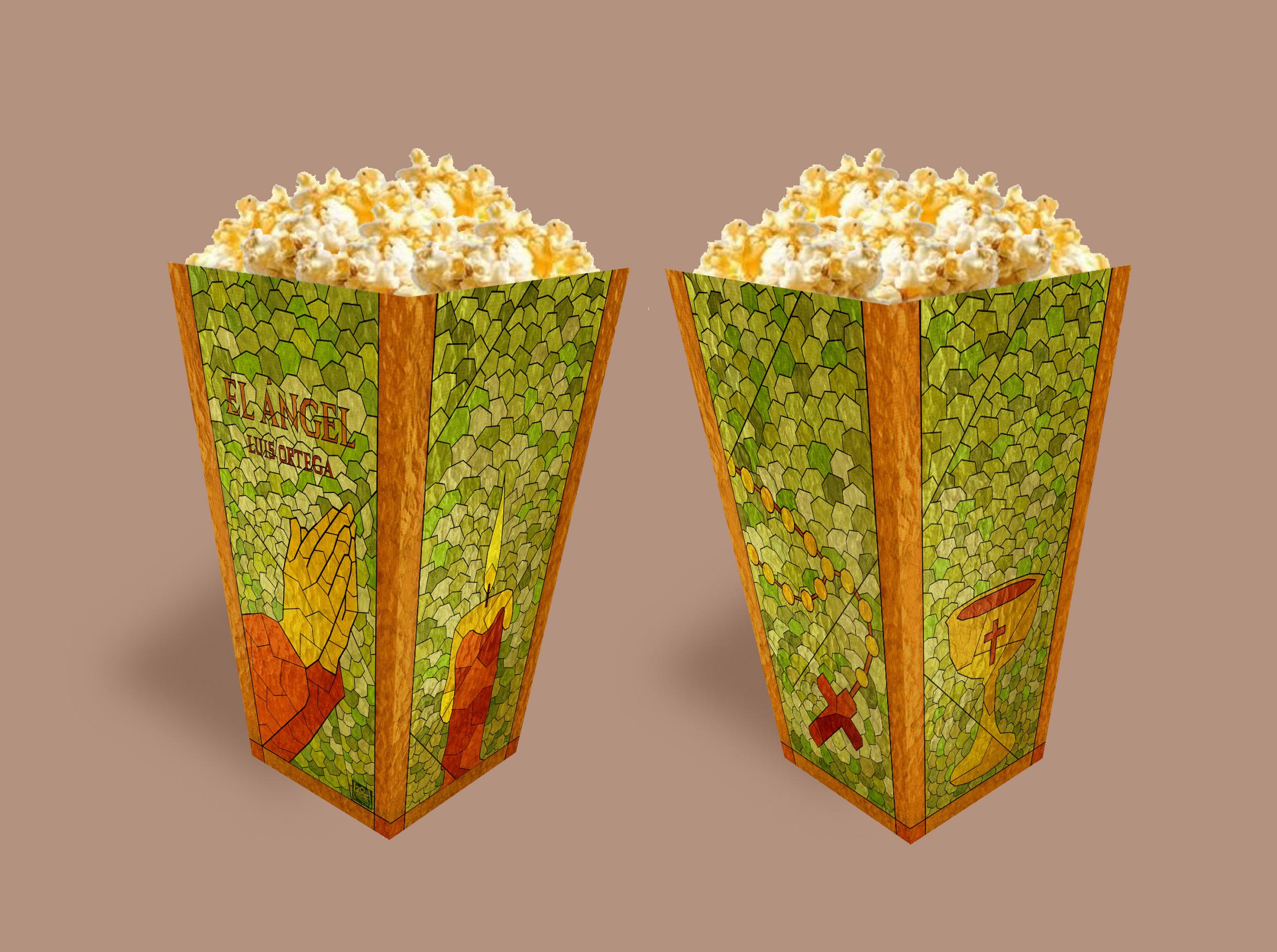 Para la película ”El Ángel”, se realizó una pochoclera y un afiche bajo el concepto de que se esconde algo malo (cabra) a través de una cara bonita y angelical (oveja blanca).