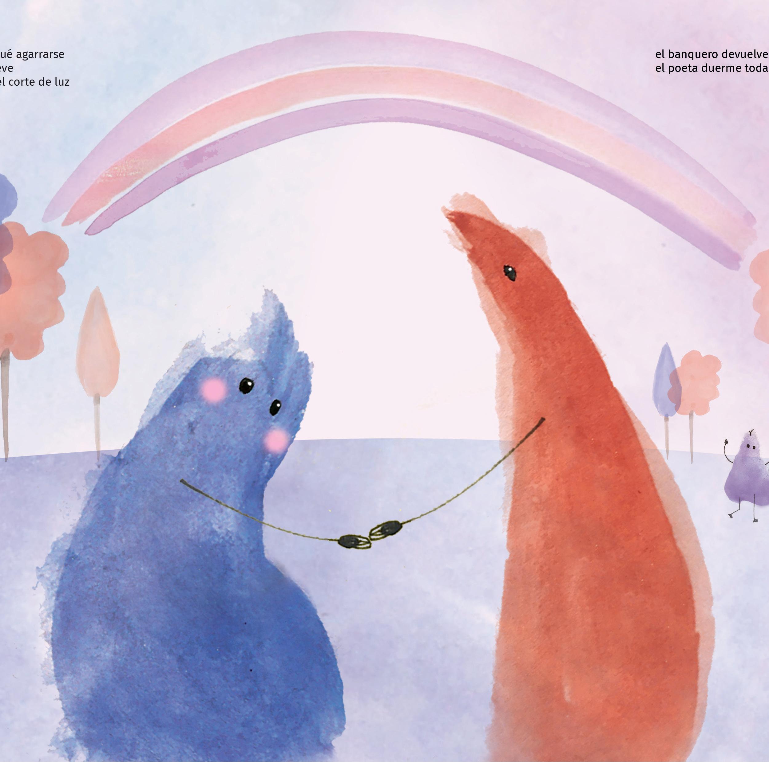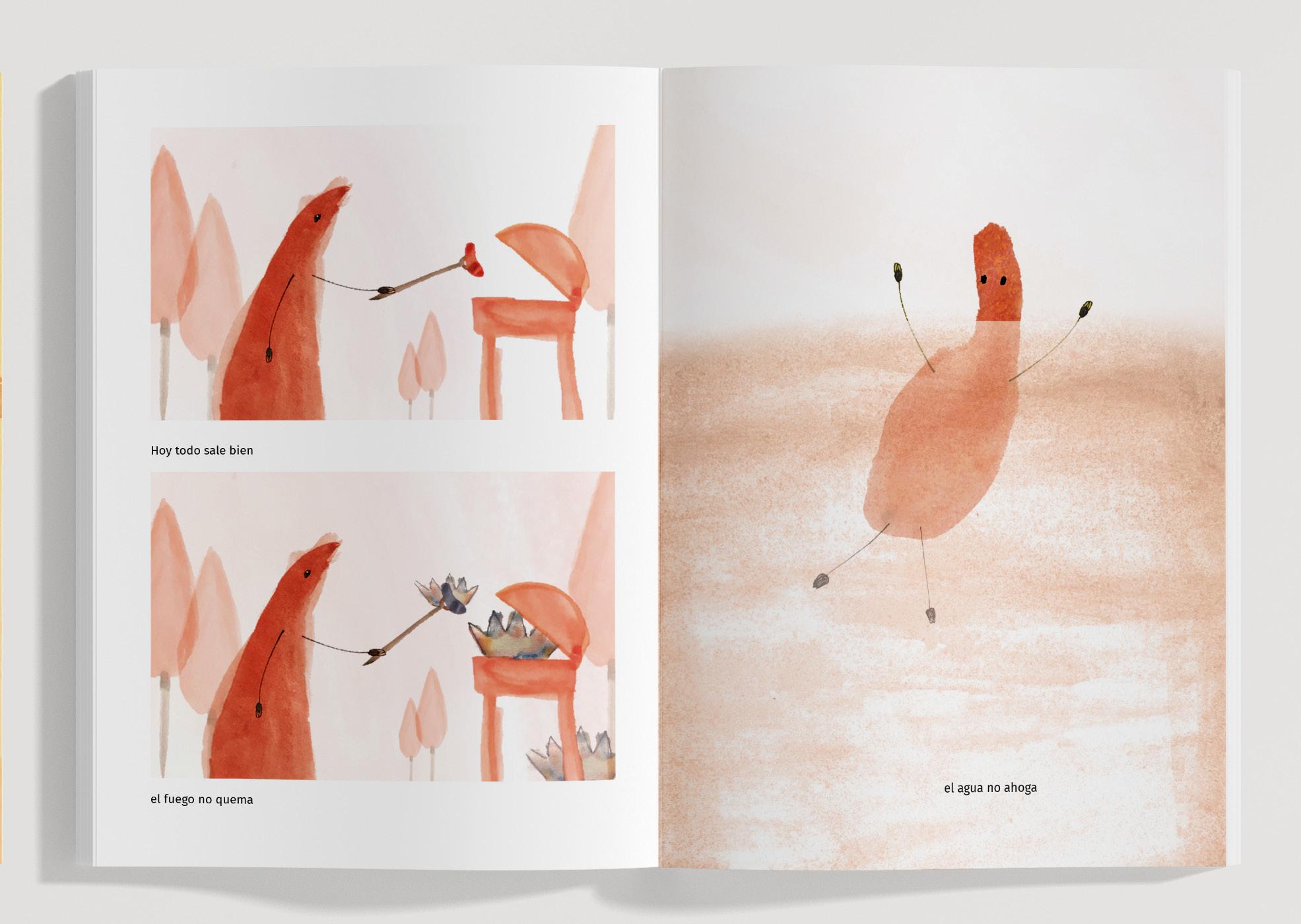 Libro ilustrado a partir del texto ”Hoy todo sale bien”, del autor Eduardo Abel Gimenez. Se representó el texto de forma sarcástica, en donde al personaje le pasaba todo lo contrario a lo que se decía.