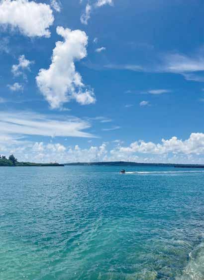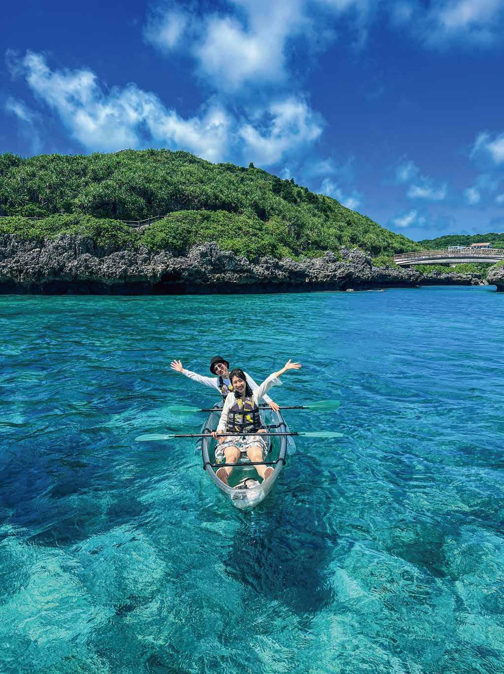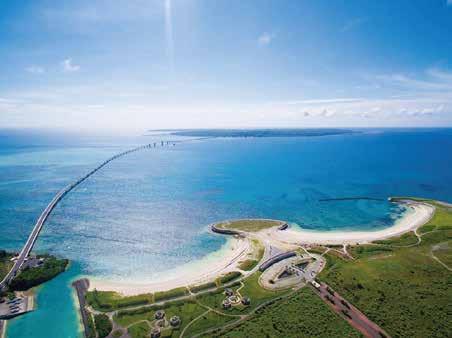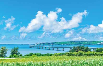 橋を渡る途中で眺める透明度の 高い海の景観がすばらしい ドライブスポットとして人気。