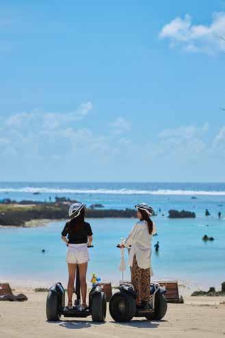 パウダーのようなきめの細かい 真っ白い砂で有名。浜の左側に ある波の侵食によってでき た ドーム状の大岩は撮影スポット としても人気。
