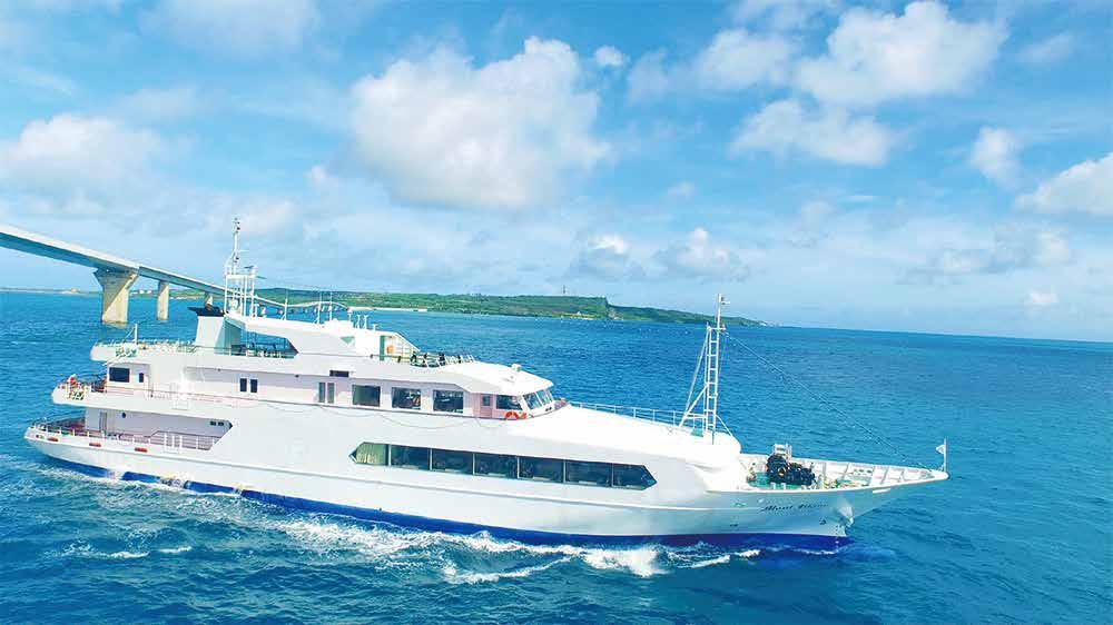 橋を渡る途中で眺める透明度の 高い海の景観がすばらしい ドライブスポットとして人気。