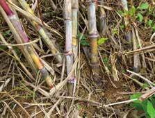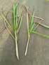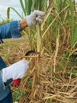 1.キビの葉を2股の鎌で切り落とす。 コツは斜めに刃を入れること。切った 葉はやり投げをして遊べます(笑)