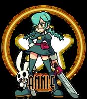 “Annie una inmortal tras un deseo al skull por parte de su madre, ahora ella combate contra el skull y es actriz de un programa infantil” -Annie, es un personaje muy rápido pero igual que big band es de ataque cercano con su espada pero compensa con algunas de su habilidades que la potencian o ayudan contra atacantes con ataque de distancia con sus ataques mágicos de su pacto demoniaco -