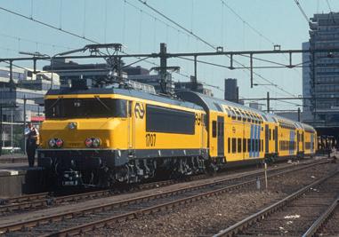 The 81 locomotives of the class 1700 emerged from 1991 to 1994 and they differed only slightly from their older siblings, the class 1600. The class 1700 differs from the class 1600 in the increased use of electronics, a newer version of the ATB train safety system (Version 4 instead of 3) and another braking system. They are two metric tons heavier, and their performance is 4,540 kilowatts / 6,086 horsepower instead of 4,040 kilowatts / 5,415 horsepower. The class 1700 was initially intended for hauling type DD-AR shuttle trains delivered by Talbot (such as the Märklin models 43577, 43578, and 43579). These shuttle trains were handled operationally here as powered rail car trains and had therefore been equipped at both ends with automatic couplers. Initially, the class 1700 units also had automatic couplers. Delivery of the new type mDDM 7700 powered rail car trains made part of the class 1700 units superfluous, and the automatic couplers were removed on road numbers 1732 to 1781 and replaced by standard prototype couplers. Several locomotives of this series had already been taken out of operation or they had been sold. Eight locomotives were still rostered on the NS in the last few years for hauling international Intercity trains on the route Amsterdam – Bad Bentheim.