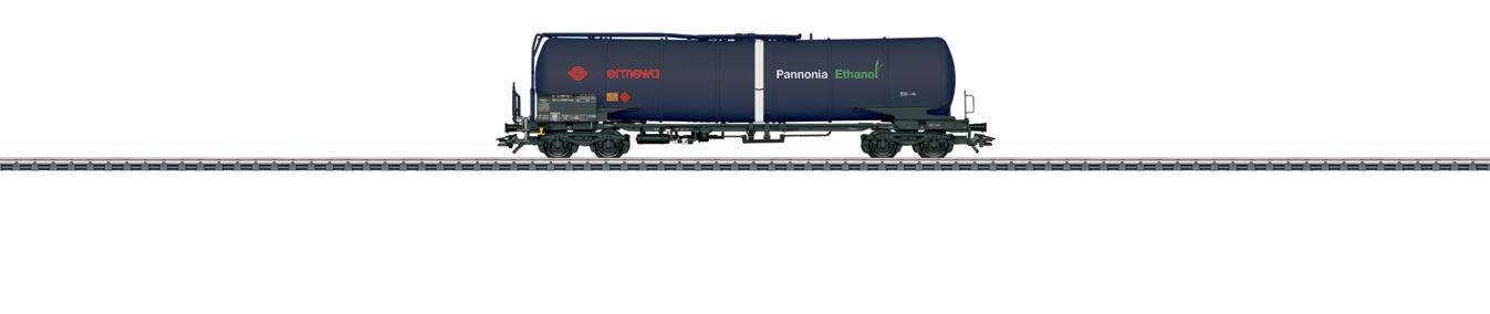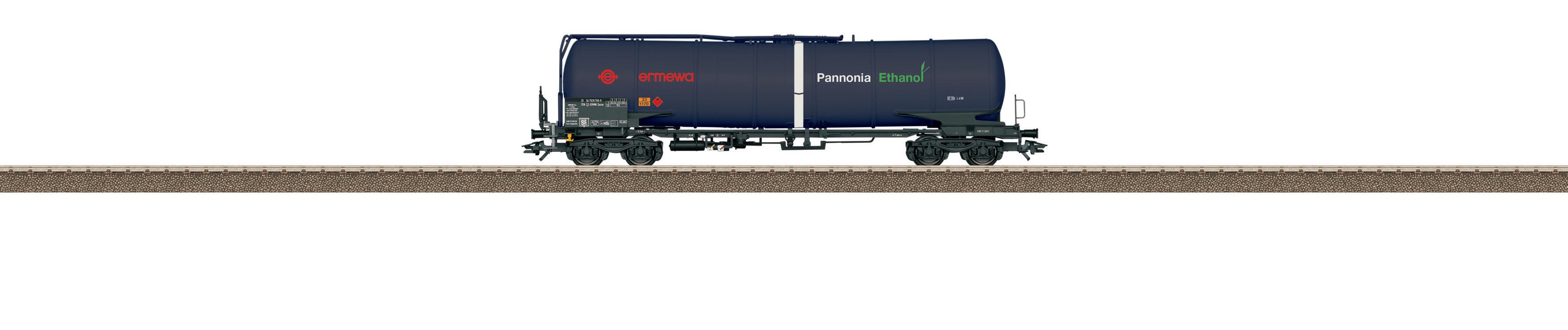 Prototype: Type Zacns four-axle 95 cubic meter / 25,096 gallon tank car. Privately owned car lettered for Ermewa S.A.S., registered in the Czech Republic. Graphite gray basic paint scheme. The car looks as it did starting in 2015. Model: The car‘s trucks are the modern type Y25Lsd1 with double brake shoes. The car has a brakeman‘s platform and a ladder on the end. The brake rigging, discharge pipes, dome cover, safety bars, and numerous other levers and grab irons are separately applied. The safety bars are constructed of metal. Length over the buffers approximately 19.6 cm / 7-3/4“. AC wheelset E700150.