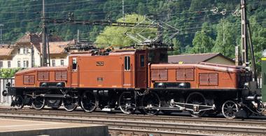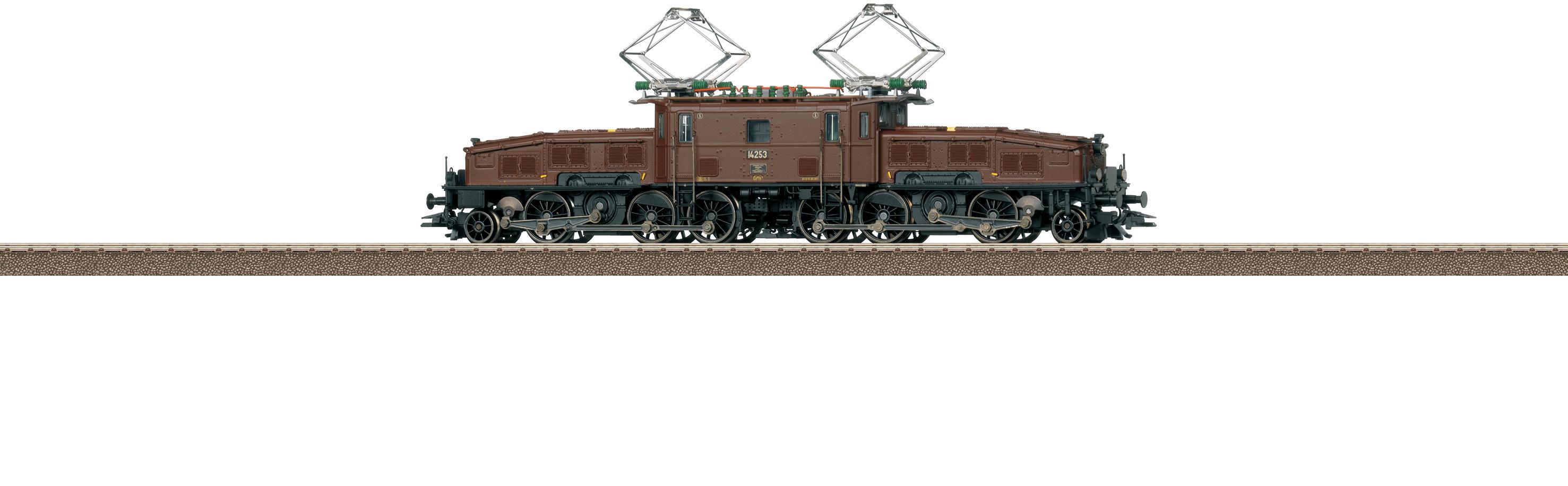 Prototype: Swiss Federal Railways (SBB) class Ce 6/8 II “Crocodile” electric locomotive, as a museum locomotive of SBB Historic. Design from the rst production series. Dark brown basic paint scheme. Standard sleeve-style buffers, end walkover plates, small switching steps, and grab irons included. Oncoming train light and Signum-Integra magnets included. Locomotive road number 14253. The locomotive looks as it currently does in real life. Model: The locomotive has a digital decoder and extensive sound functions. It also has 2 controlled high-ef ciency propulsion systems with ywheels, 1 motor for each powered truck. 3 axles and jackshaft powered in each powered truck. Traction tires. The locomotive frame is articulated to enable the locomotive to negotiate sharp curves. The triple headlights and 1 white marker light (Swiss headlight / marker light code) change over with the direction of travel, will work in conventional operation, and can be controlled digitally. When the locomotive is running “light” the lighting can be changed to 1 red marker light. The locomotive has highly detailed metal construction with many separately applied details. The locomotive body comes in 3 parts with hoods that swing out separately. The roof equipment is detailed with safety grills beneath the pantographs. Length over the buffers 22.3 cm / 8-3/4“.