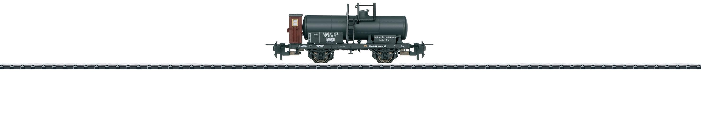 Prototype: Two-axle tank car with a brakeman‘s cab. Privately owned tank car for the Rositz Sugar Re nery, used on the Royal Saxon State Railways (K.Sächs. Sts.E.B.). The car looks as it did around 1913. Model: The car frame and body features intricate construction. The number boards and brakeman‘s cab are separately applied. Length over the buffers 10.4 cm / 4-1/8“. AC wheelset E36667900. Trix Express wheelset E33339010.