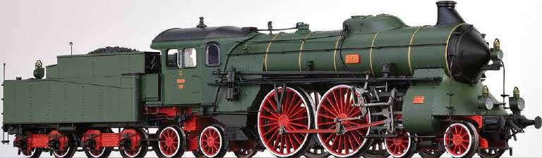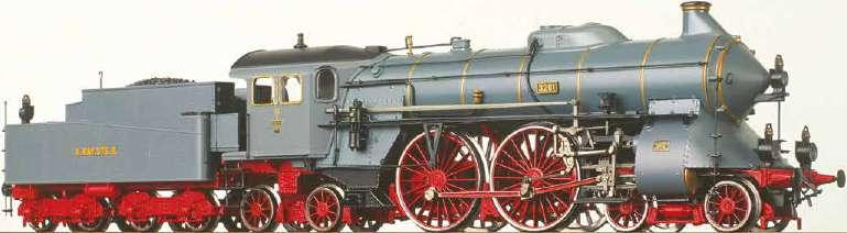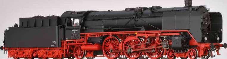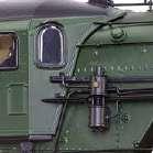 Model: Tender body, chassis and boiler in die-cast zinc; fully mobile tender bogie; reproduction of the model-specific tender bogie; short coupling between locomotive and tender; 5-pole skew-wound motor with 2 flywheel drives; true-to-scale reproduction of the underframe; finest metal spoke wheels; true-to-original reproduction of the boiler back wall; driver´s cab lighting (possibility to switch on and off with digital system); numerous metal add-on parts; perfectly replicated rivets and hatches; filigree reversing gear