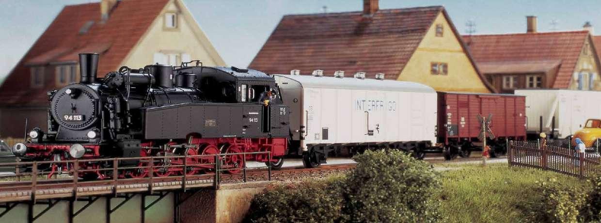 Model: Boiler, driver's cab and tender made of high-quality, impact-resistant plastic; perforated underframe and spoked wheels in diecast zinc; true-to epoch lighting, multipart lamp housing; standard shaft rear with link guide; Close coupling between locomotive and tender; perfectly replicated back boilerplate; drive in the tender; single axle bearing; true-to-scale details; epoch-typical toe bearing; 1.000 mm leading wheels