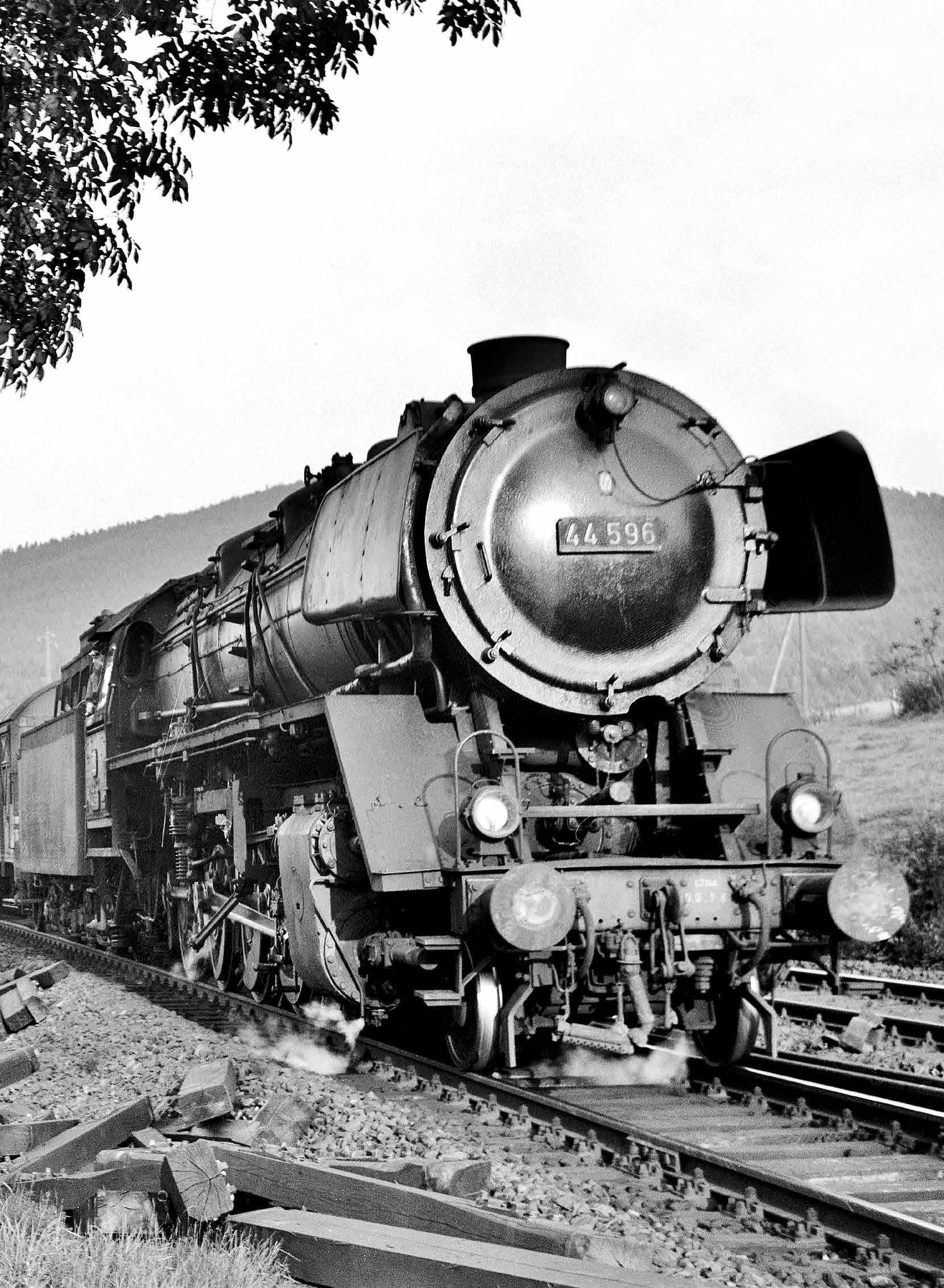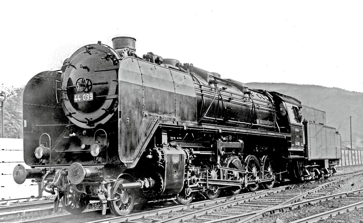The comparison of the two series did not initially favour the more powerful 44 series – the increased economy offered by the two-cylinder type 43 locomotive won the day. However, as Germany emerged from the shadow of the Great Depression in the mid-1930s, calls for more powerful freight locomotives grew louder. The experience gained ten years earlier with the type 44 was still fresh in the memory. The type 44 013-065 locomotives were consequently developed as an intermediate series – in part based on the experience gained in steam engine construction since 1925. In 1938 (from 44 066), full series production finally began. By 1949, a total of 1989 type 44 locomotives had been built at various locomotive factories in Germany and abroad. The new models lived up to all expectations and henceforth became the backbone of the goods train fleet.
