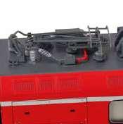 Model: Etched treadplates; LED lighting; Windscreen wipers attached individually; Traction tyres; Driver's cab lighting switchable like the original; long-distance headlights raise like the original; smooth, steady setting off even at speed level 1; simple, cable-free dismantling of the housing possible as well as non-twist locking lugs; true-to-original rest position of the pantographs; setting off and braking delay like the original; Metal frame; many attached grip rails; Chassis with free view