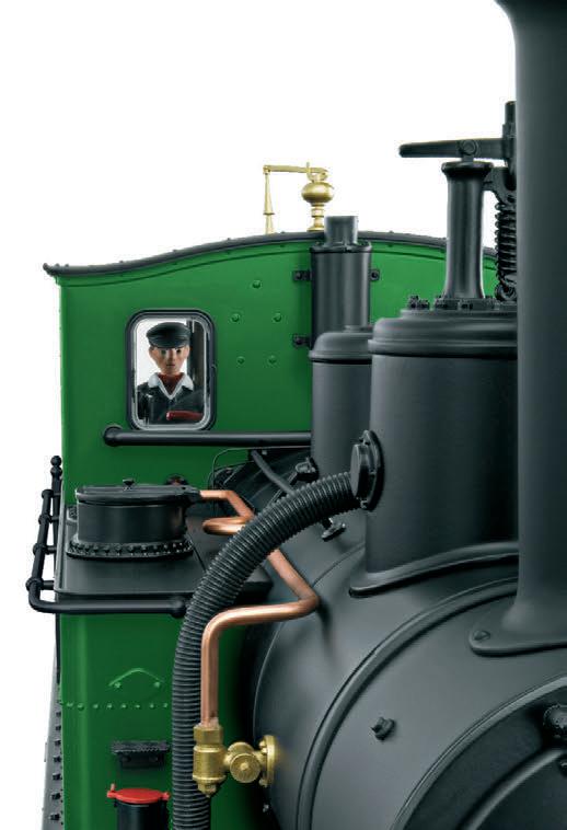 in digital operation. The running sounds also work in analog operation. The locomotive has a builtin smoke generator with steam exhaust synchronized to the wheels, as well as cylinder steam, steam at the exhaust for the vacuum brakes, and steam exhaust at the whistle, when it is activated.