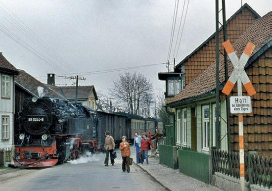 In the Seventies, the question came up on the DR of how to operate more rationally on the narrow gauge lines in the Harz region. The originally planned replacement of the steam locomotives by new diesel locomotives failed for one thing because there were no suitable diesel locomotives in the East Block, for the other thing because foreign currency was lacking to import from the West. Steam operation was thus kept out of necessity. However, in order to reach a certain modernization of the locomotive roster, the decision was made to convert the class 99.2324 steam locomotives to oil firing. In 1976, road number 99 244 was converted as the first unit. The coalbunker was replaced by an oil bunker with a capacity of 2.8 cubic meters / 740 gallons. The boiler was equipped with a lining of fireproof brickwork in the area of the firebox. After correcting various teething problems, the locomotive turned out so well that by 1981 all the locomotives of this class were converted accordingly. Yet, several months after the conversion the USSR reduced deliveries of oil to the GDR drastically and at the same time the price was increased substantially. This caused the DR to convert the locomotives back to coal firing as soon as 1982. This conversion was ended in the spring of 1984 and oil firing on these locomotives became history.