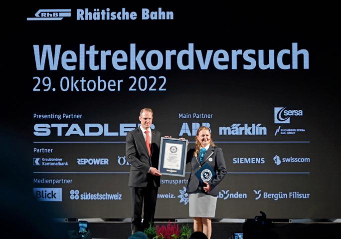 Congratulations! We did it. A world record. It has been known for a long time that the Albula Line of the Rhaetian Railroad is one of the most fascinating and at the same time one of the most spectacular lines of this Swiss railroad. It has also been known that the RhB is always surprising its fans with the unusual and it would like to draw the locals as well as tourists from around the world into its orbit. This has once again succeeded with this spectacular project! Sensational, what an event.