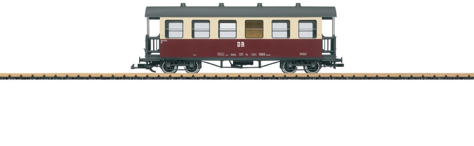 This is a model of a German State Railroad passenger car from the Harz network. The paint scheme and lettering are prototypical for Era IV. The car has many separately applied details and interior details including a toilet. The car has metal wheelsets.