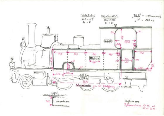 The “Rhätia” was delivered from SLM in Winterthur as road number LD1 in 1889 as the first locomotive of the Landquart-Davos Railroad of that time. With a performance of 250 pounds per square inch, this locomotive weighed 30 metric tons and had a maximum speed of 45 km/h / 28 mph. It corresponded to the level of technology for that time and it was used in normal train service. Yet, soon the small class G ¾ locomotives were pushed into less challenging service until they became unnecessary after complete electrification of the RhB network at the start of the Twenties. In 1928, road number 1 was retired and intended for a planned Swiss railroad museum. In 1970, the locomotive came to the museum railroad of Blonay-Chamby in Western Switzerland, where it was kept in storage. In anticipation of the 100th anniversary of the RhB, the locomotive came back to the RhB in 1988. It was overhauled and restored to operational condition there and was used to pull special trains at the anniversary in 1989. In the following years, special trains were also regularly pulled by the “Rhätia”, until it was stored in 2014 due to a deadline for maintenance and servicing. There have been many calls for donations to restore the locomotive again, also some with appropriate models – this locomotive can thus continue as a testimonial to the beginning of the RhB.