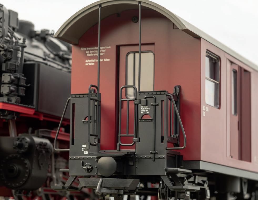 Welcome to the LGB new items for 2023. Join us in greeting at the start of the new items rock solid LGB garden railroad models with their prototype in the Harz region at the end of the Seventies. Here, this locomotive is something quite special because it was the first to be converted in 1976 in the GDR of that time from coal to oil firing, and then to be converted back to coal operation at the start of the Eighties. This locomotive represents more than just “another train for your garden” with its two passenger cars and the half baggage car.