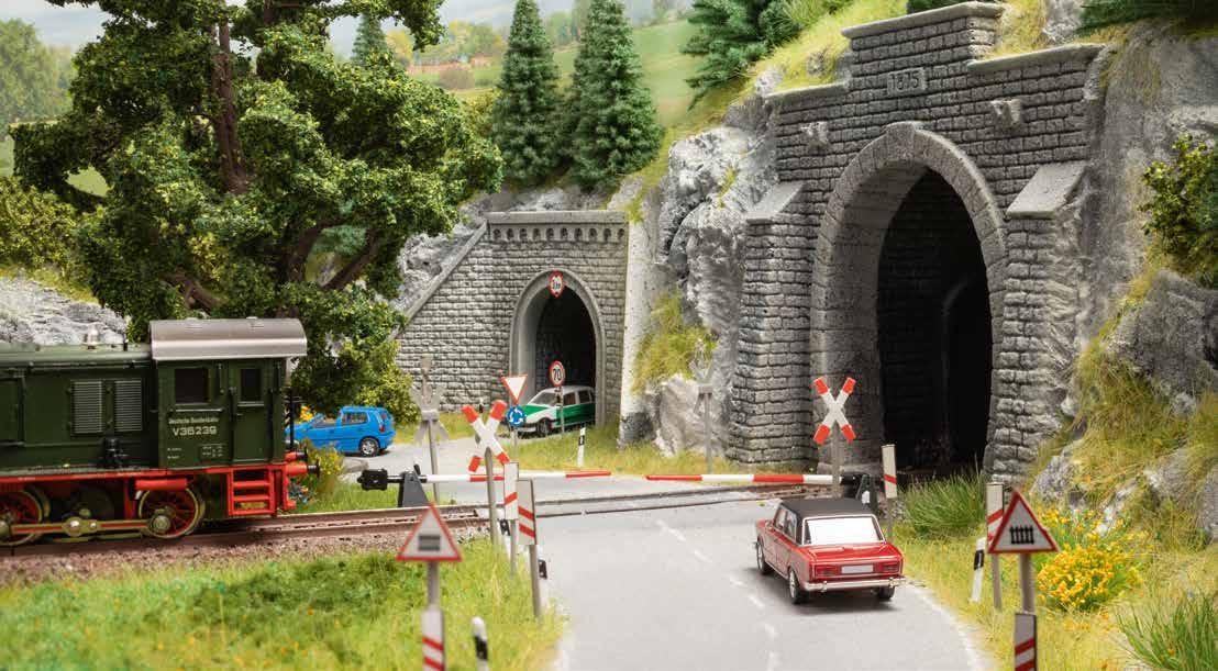 Each item is accompanied by a gauge symbol. As an H0 railway modeller, you'll recognise which items are of interest to you by the symbol. An item without a gauge symbol can be used for all gauges. The information on gauges at the bottom of the page gives you a quick overview of which gauges you'll find on the respective double page.