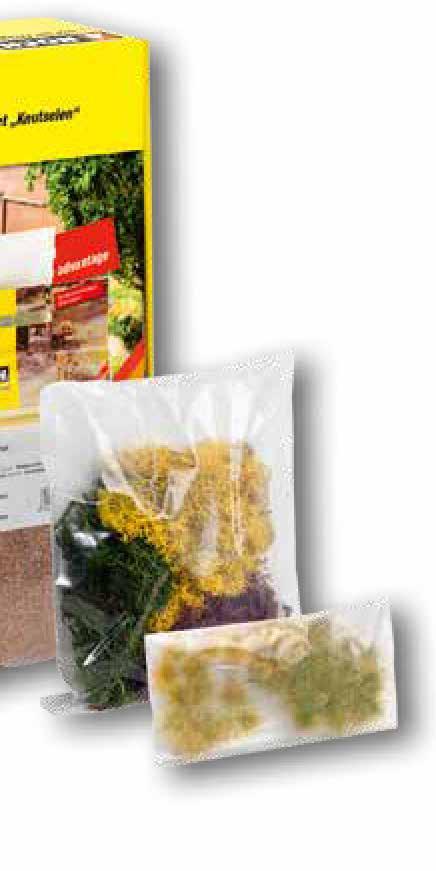 Product fits for ... · all gauges 127 · specific gauges (e.g. H0 and N, ...) 267 267 ∙ 435 Keyword Index Product Gauges 0 Figures 336 1 Figures 340 3D Structured Texture 80 3D Cardboard Sheets 82 82 Arable Land 150 Advent Calendar with Figures 177 / 299 Advent Calendar Handicraft 180 Christmas Layout 181 Briefcase Layouts 374 Rust Paint 184 Aluminium Wire Mesh 45 Aluminium Frames 355 / 372 Extensions for Large 348 Architecture-Line 395 ATHEARN Range 426 426 Ramps 54 Station 220 222 Platform 224 224 Handicraft Advent Calendar 180 Crafting Sets ab 20 Farm 244 244 Trees 'Classic Series' ab 206 Trees Large Scales 342 Trees 'Hobby Series' 214 Trees 'PROFI Series' ab 194 Trees 'Standard Series' 212 Tree with Swing 202 Tree Structures 175 175 Tree Assortments 211 211 Flocking Device 135 Leaves 143 / 144 / 147 Flowers ab 153 Groundcover Foliage 145 Terrain Structure Paste 101 Boats 296 296 Bridges 57/334 57 425 Castle Ruins 262 Deco minis 324 Deco Scenes 314 Detail Markers 187 Easy-Track Railway Route 27 38 Icicles 187 Bicycles / Mountainbikes 293 Speed Controller Kit 379 Paints 185 Fields and Meadows 186 Rocks, Rock Walls 85 Rock Forming System 92 Rock Compound 46 Preformed Layouts 349 Figures 273 331 336 340 344 Themed Figures Sets 300 Flock Material 143 Rivers and Lakes 133 Foliage 144 Brothel, burning 240 Graveyard 267 267 Buildings 219 Landscaping Alu Wire Mesh 45 Landscaping 41 Landscaping Wire Mesh 44 Landscape Crepe Paper 45 Vegetable Patchs 156 Boulders 148 Waters 113 / 122 Plaster / Plaster Cloth 45 Trackbed 47 Track Cleaner 55 Ballast 48 / 149 / 338 Product Gauges Track Systems: UNITRACK H0 Gauge 415 UNITRACK N Gauge 404 ROKUHAN Z Gauge 417 Helix 52 52 Grass Tufts 152 Grass Fibres 134 Grass Glue 135 Gras-Master 3.0 135 Grass Mats 162 Puffer Bottle 141 Grass Strips 152 Large Gauges Accessories 342 Haftfix Spray Adhesive 184 Houses 219 409 425 Hedges 146 / 217 Temporary Glue 188 / 299 Hobby Figures 309 KATO Range 395 395 Gravel 148 Childrens Playground, 312 Glues 188 Wrinkle Rocks 94 94 Cork Trackbeds 47 Carriages 285 Landscaping Modelling Foil 44 Laser Cut Bridges 58 58 Laser-Cut Building Kits 218 330 Laser Cut Buildings 218 330 Laser Cut minis Kits 160 Laser-Cut minis Plants 158 158 Leaves 144 / 193 Crash Barriers 103 103 LGB Accessories 342 Lovers in Action 297 297 Train Service Trays 373 Locomotives 394 394 417 408 408 Walls 71 Model Railway in a 374 Model Railway Figures 273 331 336 342 340 Modelling Foil 44 Artificial Water 122 Fashion Show, micro 238 Lichen 147 / 217 N Track System 402 N Locomotives and Wagons 398 Nature+ Products 150 Natur+ Meadows and 150 Nature Trees 192 Natural Stones 49 / 148 NOCH kreativ 381 Palm Trees 205 205 205 Patina Markers 186 Patina Products 184 / 186 Squares 97 Portals 71 332 Favourable Figures 308 PROFI Bushes 146 Guidebooks: Easy-Track 10 A Family Hobby 12 St Sebastian 14 Speed Controller Kit 379 Cleaning Block 55 Track Cleaners 55 Riding Arena, micro motion 396 Rhaetian Railway ® (KATO) 417 ROKUHAN Z Gauge 184 Rust Paint 148 Product Gauges Rail Cleaners 55 Narrow Gauge Accessories H0e & H0m Products: Page 334 Snow 169 Snowy Fir Trees 212 / 216 / 175 Ballast Glue 189 Lakes and Rivers 113 Sexy Scenes 297 297 Signal Base, Signal Niche 76 76 Assortments: Classic Trees 206 Standard Trees 212 Grass Mats 162 Sound Scenes 314 Compound 46 Spray Glue 189 Power Supply 379 Stones 48 / 148 Roads 354 333 97 Tram KATO 414 Road Construction Set 101 Street Marking 100 Shaker 147 / 193 Scatter Grass 140 Scatter Material 142 Structured Flock 143 Structured Roads 102 102 Themed Sets 248 Animals 286 Transformer Panels 372 Railway Route Kit Easy 27 27 Tunnels 346 346 Tunnels Interior Walls 78 Unpainted Figures 295 UNITRACK H0 Tracks 414 UNITRACK N Tracks 402 UNITRAM N Tramway 412 Underpass 74 US Locomotives / Wagons: KATO 395 395 Athearn 427 427 Abandoned Places 270 Traffic Signs 103 103 Viaducts 64 64 Water Structuring 103 Aqua Effects 124 Culvert 110 Water-Drops® 120 Paths 97 Christmas / Advent 167 Christmas Trees 174 Christmas Market 178 Vinery 242 242 Vines 159 204 Meadows and Fields 127 Wild Grass 141 Winter 167 Z Locomotives & Wagons 417 Fences 326 Z Figures 331 Z Buildings 330 Z Track System ROKUHAN 422 Ornamental Plants 156 156 ZITERDES 25 mm – 28 mm: from page 387 Accessory Sets 319 321 G Scale Accessories 342 0 Scale Accessories 366 1 Scale Accessories 340 Z Scale Accessories 330