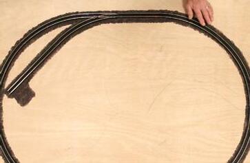 Having positioned the layout make sure that each track piece is correctly connected by running your fingers over each joint. Having done that you are now ready to start pinning the track down.