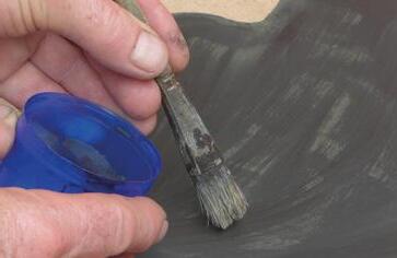 To paint the roadways and paths that you marked out earlier, use Humbrol No.32 dark grey paint or a suitable alternative available from any DIY store. No.2 size Humbrol tin or an equivalent size should be sufficient. You can use the 1" paintbrush to apply the ‘roadway’ but remember to clean the brush once you have finished.